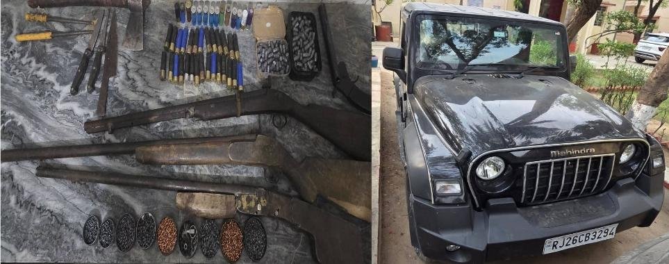 डीएसटी टीम और सदर थाना पुलिस की संयुक्त दबिश-हथियारों का जखीरा बरामद-थार गाड़ी भी जप्त