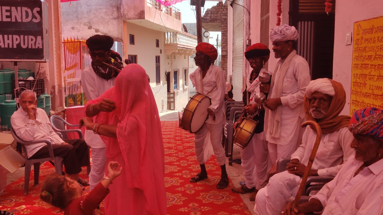 हेमराज लढ़ा ने अपनी माताजी की प्रतिमा विशेष रूप से वियतनाम से पत्थर मंगवाकर तैयार करवाई और उसे अपने घर में स्थापित किया। प्रतिमा के सामने श्रद्धालुओं की लंबी कतारें लगी हुई हैं। हर व्यक्ति सिर झुकाकर आशीर्वाद ले रहा है, और माहौल पूरी तरह भावनात्मक हो गया है। आज आयोजित श्री चारभुजानाथ महाराज की प्रसादी में सैकड़ों लोग एक साथ पंगत में बैठे नजर आए। यह दृश्य अपने आप में सामाजिक समरसता की जीवंत तस्वीर बन गया जहां जाति, वर्ग और भेदभाव की दीवारें पूरी तरह टूटती दिखीं।