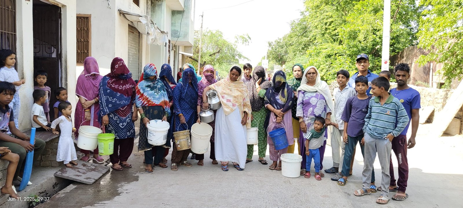 मंगरोप।कस्बे के मेवाती मौहल्ले की महिलाओं ने बुधवार सुबह खाली बर्तन बजाकर जलदाय विभाग के खिलाफ प्रदर्शन किया है।ताहिरा बानू ने बताया कि मेवाती मौहल्ले में करीब 25 परिवार रहते है।पिछले करीब 2 महीने से नलों में पानी नहीं आ रहा है।पानी के लिए सुबह जल्दी उठकर 1 किलोमीटर दूर जाना पड़ता है।पूरा परिवार पानी लाने में लग जाता है कई बार परिवार के पुरुष मजदूरी पर जाने से भी वंचित रह जाते है।पानी की समस्या से तो जुझ ही रहे है साथ ही आर्थिक परिस्थितियों से भी गुजरना पड़ रहा है।कई बार उच्च अधिकारियों को समस्या से अवगत करवाया लेकिन समाधान नहीं हुआ।मोहल्ले की आक्रोशित महिलाओं ने जलदाय विभाग के खिलाफ उग्र नारेबाजी करते हुए बर्तन बजाकर प्रदर्शन किया।महिलाओं ने चेतावनी दी है कि 3 दिन में समस्या का समाधान नहीं हुआ तो पानी के बर्तन व बच्चों सहित उपखण्ड कार्यालय पर प्रदर्शन करेंगी।इस दौरान सुल्तान मोहम्मद,अनवर हुसैन,लियाकत अली,जाकिर हुसैन,खलील मेवाती,हिना बानू,जाहिदा बानू, परवीन बानू,शहनाज बानू, बानो मेवाती,नूरजहां बानू,शाहिना बानू,रिहाना बानू मेवाती आदि सहित कई महिलाएं मौजूद थी।