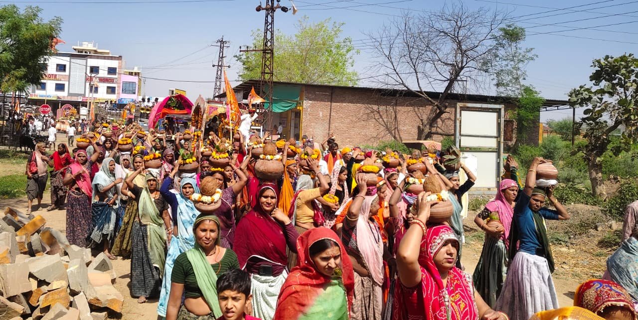 सवाईपुर :-स्मार्ट हलचल|क्षेत्र के त्रिवेणी संगम में भोलेनाथ मंदिर प्रांगण में बानोड़ा बालाजी के तत्वावधान में श्री राम कृष्ण कल्कि शक्ति महायज्ञ को लेकर आज रविवार को विशाल कलशयात्रा के साथ चारभुजा नाथ की भव्य शोभायात्रा निकाली गई, कल सोमवार से महायज्ञ की शुरुआत होगी । श्री बानोड़ा बालाजी सेवा मंडल के सदस्यों ने बताया कि श्री श्री 1008 श्री बानोड़ा बालाजी के तत्वावधान में त्रिवेणी संगम पर आज रविवार को श्री राम कृष्ण कल्कि शक्ति महायज्ञ शुरू होगा, जिसमें पांच दिवसीय पंच कुंडीय महायज्ञ में जोड़े आहुतियां लगायेंगे । आज रविवार को त्रिवेणी सहित गोविंदपुरा, बीड़ का खेड़ा, खटवाड़ा, देवी सिंह जी का खेड़ा, सांड गांव, लोडियाणा, बिलिया, जालिया, पीपल्दा, मानपुरा, रामपुरिया, खाचरोल, भगवानपुरा, रलायता, होडा, पिताजी का खेड़ा, नंदराय, लालपुरा सहित 25 गांवों से चारभुजा नाथ सहित कुल 38 बेवाणों की शोभायात्रा त्रिवेणी संगम पर पहुंची, गांवों से सुबह 9:15 बजे चारभुजानाथ के मंदिरों से कलश यात्रा शुरू हुई, जो दोपहर 12:15 बजे मेला चौक से एक साथ शोभायात्रा शुरू हुई । डीजे व ढोल नगाड़े के साथ कलशयात्रा व शोभायात्रा शुरू हुई, जो नेशनल हाईवे सहित विभिन्न मार्गो से होते हुए गुजरी, इस दौरान जगह-जगह शोभायात्रा व कलश यात्रा का पुष्प वर्षा कर स्वागत किया । 501 महिलाएं और बालिकाएं सिर पर कलश धारण कर कलश यात्रा में शामिल हुई, महिला-पुरुष व युवक-युवतियां भजनों पर नाचते गाते हुए चले । कल 13 अप्रैल सुबह पूजा-अर्चना के साथ महायज्ञ की शुरुआत होगी । वही 17 अप्रैल को को पूर्णाहुति के दिन दोपहर 2:15 बजे भगवान श्री चारभुजा नाथ और यज्ञ लक्ष्मी का पाणिग्रहण संस्कार होगा । प्रतिदिन रात्रि को भजन संध्या, बगड़ावत कथा का आयोजन होगा ।।