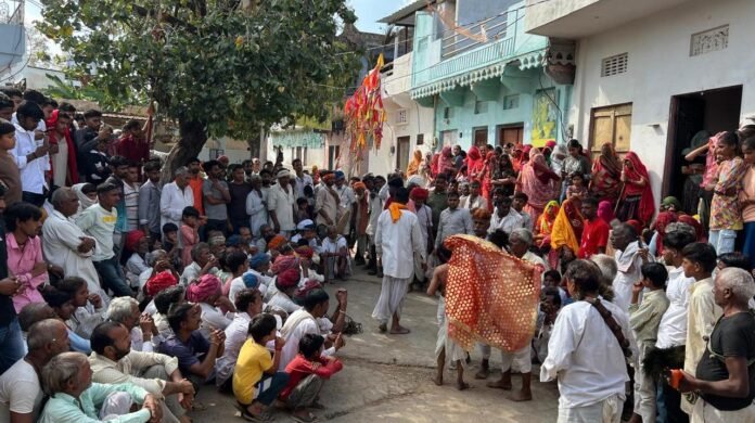 सवाईपुर ( सांवर वैष्णव ):- सवाईपुर क्षेत्र के चावंडिया गांव में नवरात्रा के समापन पर आज चामुंडा माताजी का नेजा निकालकर ज्वारे को विसर्जन किया । ग्रामीणों ने बताया कि नवरात्रा के समापन पर आज शुक्रवार को चामुंडा माताजी का नेजा निकाला गया, नेजा चामुंडा माता मंदिर से प्रारंभ होकर गाणा वाले सगस जी, चारभुजा नाथ मंदिर होते हुए गांव के विभिन्न मार्गो से होकर चामुंडा माता तालाब पर पहुंचा, जहां पर माता जी के ज्वारे और भभूति को तालाब में विसर्जन किया । इसी दौरान चामुंडा माता ने आगामी वर्ष को लेकर भविष्यवाणी की, जिसमें अगले वर्ष क्षेत्र में अच्छी बारिश के साथ ही तालाब के भरने की भविष्यवाणी की । इस दौरान बड़ी संख्या में ग्रामीण मौजूद रहे । वही दुसरी ओर नवरात्रा समापन पर प्रातः 11:00 बजे से लेकर शाम 5:00 बजे तक सवाईपुर कस्बे का बाजार भी बंद रहा ।।