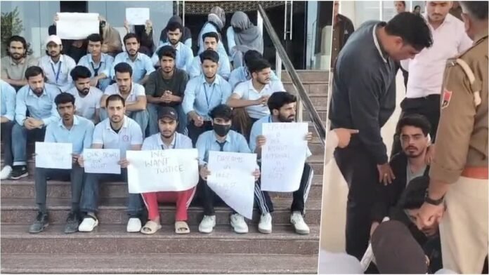 मेवाड़ यूनिवर्सिटी में नर्सिंग कोर्स कर रहे कश्मीरी छात्रों का भविष्य अंधेरे में, धरने पर बैठे छात्र बोले- डिग्री की मान्यता नही