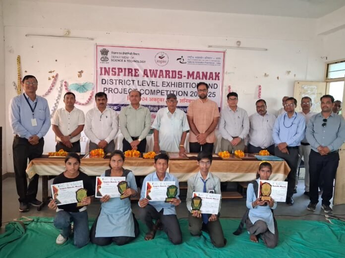 स्मार्ट हलचल|जिला स्तरीय इंस्पायर अवार्ड प्रदर्शनी का आयोजन स्वामी विवेकानंद राजकीय मॉडल स्कूल ब्लॉक करौली में किया गया।प्रधानाचार्य गोविंद सहाय प्रजापत ने बताया कि विज्ञान एवं प्रौद्योगिकी विभाग की ओर से ग्रामीण व शहरी स्तर के छात्रों की वैज्ञानिक सोच को प्रोत्साहित करने,विद्यार्थियों में नवाचार और प्रयोगधर्मिता का विकास करने,भविष्य के वैज्ञानिकों को पहचान का अवसर प्रदान करने के उद्देश्य से जिले के शीर्ष नवाचारी मॉडलों की जिला स्तरीय प्रदर्शनी का आयोजन किया गया। कार्यक्रम प्रभारी मुकेश कुमार मीणा ने बताया कि इस अवार्ड प्रदर्शनी में जिले के 50 विद्यार्थियों ने भाग लिया प्रदर्शनी के आरंभ में मां सरस्वती के चित्रपट पर राजेश कुमार मीणा अतिरिक्त जिला शिक्षा अधिकारी माध्यमिक, योगेश शर्मा प्रधानाचार्य,सुनील भास्कर एन आई एफ विज्ञान एवं प्रौद्योगिकी विभाग,समय सिंह मीणा प्रधानाचार्य,गोविंद सहाय प्रजापत ने मां सरस्वती के चित्रपट पर दीप प्रज्वलन एवं माल्यार्पण करके किया। मीडिया प्रभारी राजेश कुमार मीणा ने बताया कि विद्यार्थियों ने अपने-अपने नवाचारी मॉडलों का प्रदर्शन किया जिनमें से पांच मॉडलों का चयन राज्य स्तर के लिए किया गया।इन चयनित विद्यार्थियों को कार्यक्रम के मुख्य अतिथि केसर सिंह नरूका,राजेश कुमार मीणा(एडीओ माध्यमिक),योगेश शर्मा ने ट्रॉफी और प्रमाण पत्र प्रदान किये।चयनित विद्यार्थी रेणु गुर्जर पहलाद सिंह पटेल राजकीय विद्यालय नांगल दुर्गासी(मच्छर मारने की मशीन का मॉडल),विनीत गुर्जर राजकीय उच्च प्राथमिक विद्यालय खोहरा घुसेटी,पूर्ति मीणा राजकीय उच्च माध्यमिक विद्यालय लेदिया, अहाम गोयल उत्कर्ष विद्या निकेतन सीनियर सेकेंडरी हिंडौन सिटी,विशाल सुमन राजकीय उच्च माध्यमिक विद्यालय मोरड़ा(रूम एयर क्लीनर)ये सभी चयनित पांच विद्यार्थी राज्य स्तर पर करौली जिले का प्रतिनिधित्व करेंगे। इस अवसर पर केसर सिंह नरूका ने अपने उद्बोधन में”विद्यार्थियों को स्वदेशी अपनाने और प्लास्टिक का प्रयोग नहीं करने के लिये कहा उन्होंने विद्यार्थियों से कहा कि मन लगाकर पढ़ाई करनी चाहिए।अतिरिक्त जिला शिक्षा अधिकारी माध्यमिक राजेश कुमार मीणा ने कहा कि “विद्यार्थियों के ये आइडिया निश्चित रूप से श्रेष्ठ हैं,जिन विद्यार्थियों का राज्य स्तर पर चयन नहीं हुआ है उन्हें निराश होने की आवश्यकता नहीं है वल्कि अगले वर्ष पूरे मनोयोग से नये आइडिया लेकर उन पर काम करें। चयनित विद्यार्थियों को बधाइयां देते हुये उन्होंने कहा कि चयनित विद्यार्थी राज्य स्तर पर इन मॉडलों मे और सुधार कर अच्छी तरह से प्रस्तुत करें।निर्णायक के रूप मे समय सिंह मीणा प्रधानाचार्य,मनोज कुमार मीणा व्याख