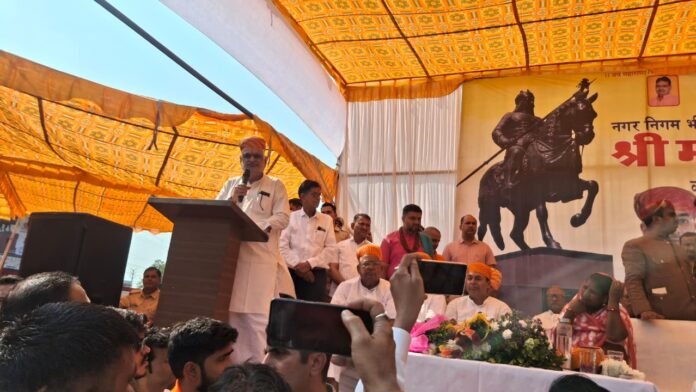 भीलवाड़ा। टाउनहॉल में आयोजित लॉटरी कार्यक्रम के पश्चात नगर विकास एवं आवासन मंत्री श्री खर्रा पांसल चौराहे पर पहुंचे जहाँ आयोजित समारोह में उन्होंने वीर शिरोमणि श्री महाराणा प्रताप की मूर्ति का अनावरण किया साथ ही युवा पीढ़ी को श्री प्रताप के जीवन के आदर्शों को अपने जीवन में उतारने का संदेश दिया।