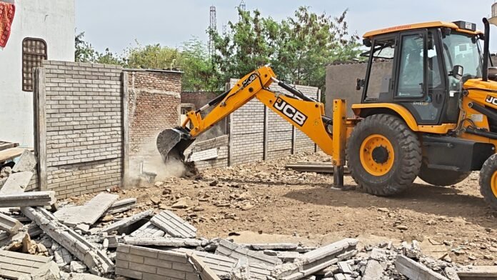 भीलवाड़ा// शहर के प्रसिद्ध धार्मिक स्थल बाबा धाम के पास स्थित बेशकीमती सरकारी भूमि पर भू-माफियाओं और अतिक्रमणकारियों द्वारा जमाए गए अवैध कब्जे पर नगर निगम की टीम ने कड़ा प्रहार किया। परिषद के दस्ते ने मौके पर पहुंचकर अवैध रूप से खड़ी की गई पक्की दीवारों को ध्वस्त कर दिया और करीब 1 करोड़ रुपए मूल्य की इस जमीन को सरकारी नियंत्रण में ले लिया।