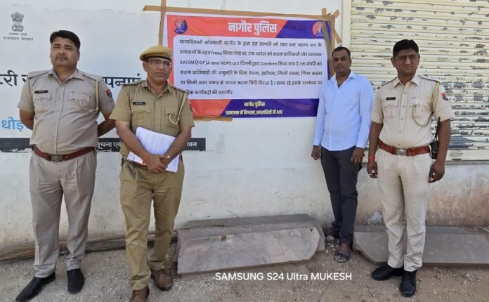स्मार्ट हलचल|नागौर जिला पुलिस अधीक्षक रोशन मीणा के निर्देशन में चलाए जा रहे “ऑपरेशन संकल्प – नशा मुक्त नागौर अभियान” के तहत नागौर पुलिस ने नशे के खिलाफ अपनी कार्रवाई को और तेज करते हुए एक बड़ी सफलता हासिल की है। इसी क्रम में थाना कोतवाली नागौर पुलिस ने नशा तस्करी से अर्जित संपत्ति पर कड़ा प्रहार करते हुए आरोपी गोविन्द राम उर्फ गोविन्द के आलीशान मकान को फ्रीज कर दिया है।