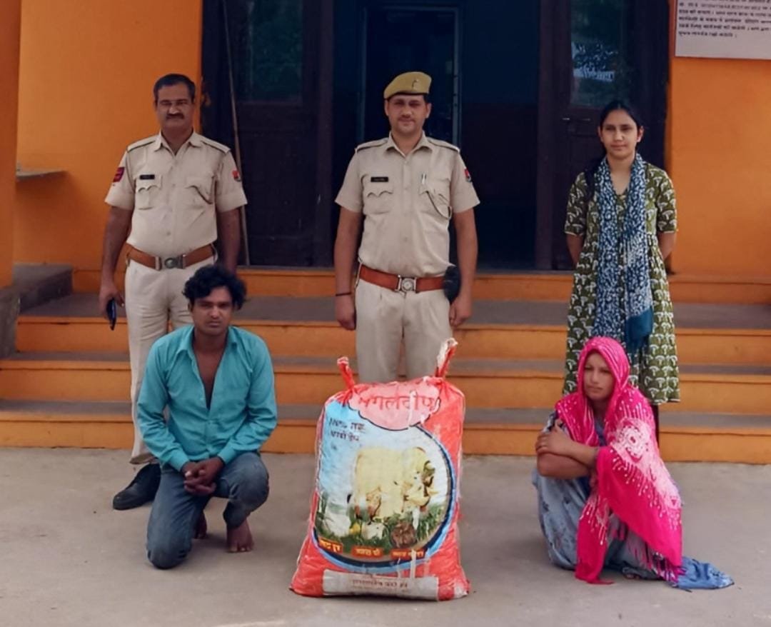 बिजौलिया। पुलिस थाना बिजौलिया ने मंगलवार रात मादक पदार्थ तस्करी के खिलाफ बड़ी कार्रवाई करते हुए 10.680 किलो अवैध अफीम डोडा चूरा जब्त किया है। तस्करी में प्रयुक्त स्विफ्ट कार (RJ 06 CC 4288) को भी जब्त कर दो आरोपियों को हिरासत में लिया गया । थानाधिकारी लोकपाल सिंह ने बताया कि यह कार्रवाई चौकी प्रभारी नरेश कुमार के नेतृत्व में पुलिस टीम द्वारा की गई। कांस्या चौकी के सामने नाकाबंदी के दौरान एक संदिग्ध स्विफ्ट कार को रुकने का इशारा किया गया, लेकिन चालक ने पुलिसकर्मी पर गाड़ी चढ़ाने का प्रयास करते हुए तेज़ रफ्तार में नाकाबंदी तोड़ दी। पुलिस ने तत्परता दिखाते हुए पीछा किया, जिसके दौरान स्विफ्ट कार ने एक टाटा हैरियर को टक्कर मार दी। दुर्घटनाग्रस्त हैरियर में एक पुरुष, महिला और बच्ची सवार थे, जो बाल-बाल बच गए। पुलिस ने कार को रोका और तलाशी लेने पर उसमें 10.680 किलो अफीम डोडा चूरा बरामद किया गया। मौके से दो आरोपी मुकेश पुत्र दासू बंजारा (उम्र 32), निवासी सुवाणिया, थाना बेगूं, जिला चित्तौड़गढ़, सेठा उर्फ सीता पत्नी रमेश बंजारा (उम्र 30), हाल निवासी गोरधनपुरा, थाना बिजौलिया को गिरफ़्तार किया गया है। आरोपियों के खिलाफ एनडीपीएस एक्ट के तहत मामला दर्ज कर पुलिस जांच में जुट गई है।