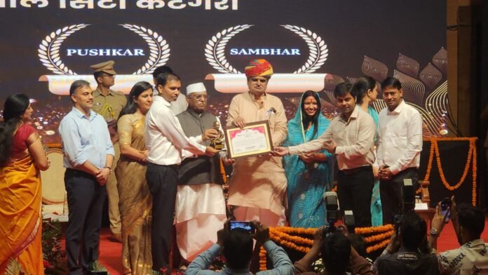 नाथद्वारा/स्मार्ट हलचल।नगर पालिका नाथद्वारा ने स्वच्छता सर्वेक्षण 2024 में राजस्थान राज्य स्तर पर प्रथम स्थान प्राप्त कर ऐतिहासिक उपलब्धि हासिल की है। स्वच्छ भारत मिशन के अंतर्गत आयोजित इस सर्वेक्षण में स्वच्छता, कचरा प्रबंधन, जनसहभागिता और नगर में साफ-सफाई की बेहतर व्यवस्था जैसे मापदंडों पर मूल्यांकन किया गया। इस उपलब्धि पर राजधानी जयपुर में आयोजित सम्मान समारोह में राजस्थान के राज्यपाल और स्वायत्त शासन मंत्री ने संयुक्त रूप से नाथद्वारा नगर पालिका आयुक्त (ईओ) सौरभ गुप्ता को प्रशस्ति पत्र और ट्रॉफी प्रदान कर सम्मानित किया। इस दौरान कार्यक्रम स्थल पर नगर विकास, नगरीय निकाय और स्वच्छता विभाग के कई वरिष्ठ अधिकारी भी मौजूद रहे।अधिशासी अधिकारी ने इस उपलब्धि का श्रेय नाथद्वारा नगर पालिका की पूरी टीम, सफाईकर्मियों, वार्ड पार्षदों और सबसे बढ़कर नगरवासियों को दिया। उन्होंने कहा कि “यह सम्मान पूरे नगर का है। जनता के सहयोग और सफाई कर्मचारियों की मेहनत से ही नाथद्वारा ने यह मुकाम हासिल किया है।”