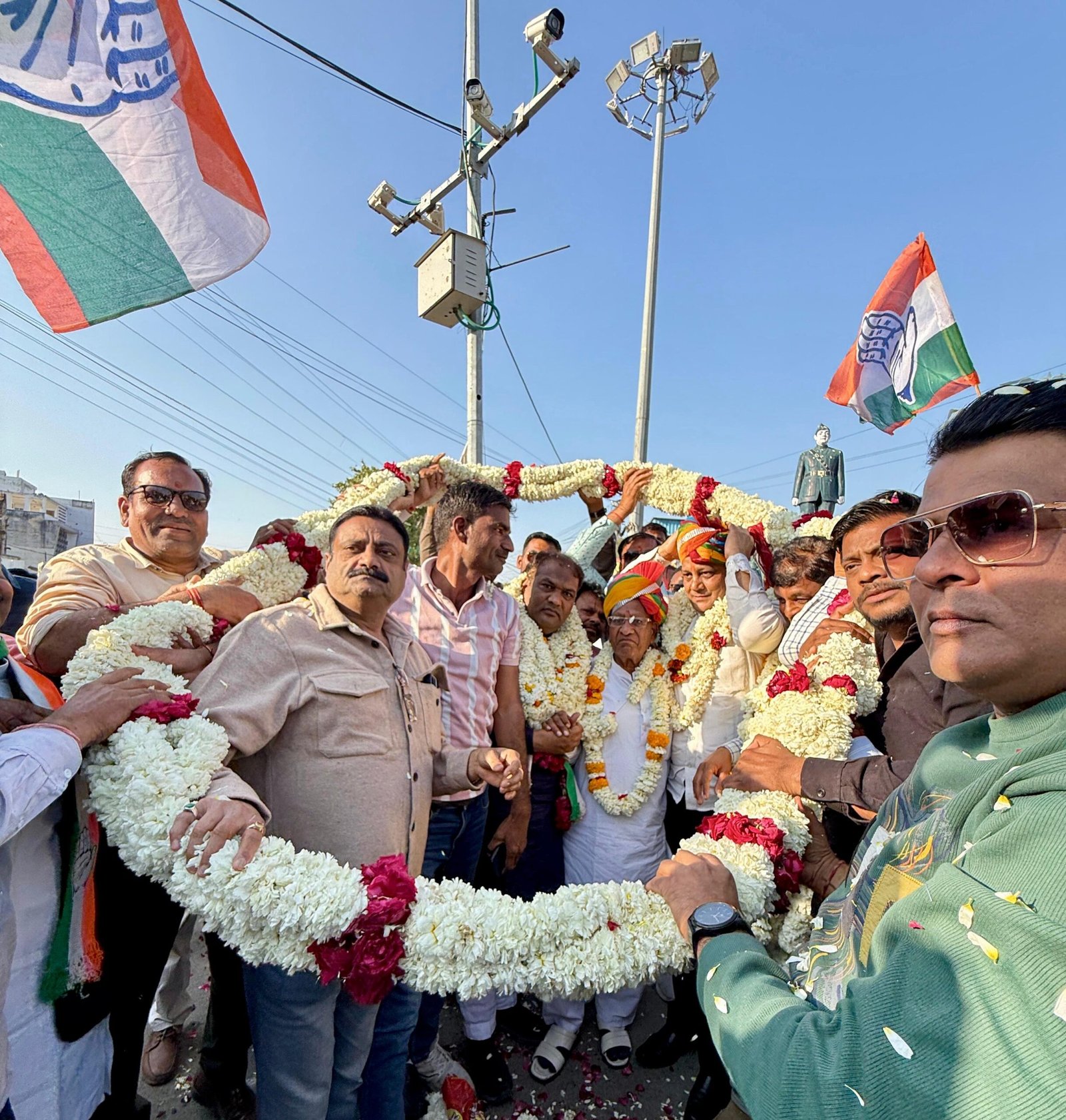 स्मार्ट हलचल|ब्यावर ब्लॉक कांग्रेस के नवनियुक्त अध्यक्ष एडवोकेट अजय शर्मा और जवाजा ब्लॉक अध्यक्ष धरमसिंह भाटी का ब्यावर आगमन पर आज सुभाष चौक, अजमेरी गेट पर कांग्रेस कार्यकर्ताओं द्वारा ऐतिहासिक स्वागत और अभिनंदन समारोह आयोजित किया गया। इस अवसर पर कार्यकर्ताओं के जोश और भारी उपस्थिति ने संगठन की एकजुटता का परिचय दिया।