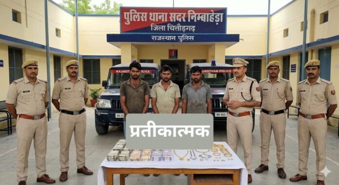 निम्बाहेड़ा | स्मार्ट हलचल|निम्बाहेड़ा क्षेत्र में अपराधों पर लगाम लगाने के लिए पुलिस पूरी मुस्तैदी से काम कर रही है। इसी कड़ी में सदर निम्बाहेड़ा थाना पुलिस ने एक गेस्ट हाउस में हुई लाखों रुपये की नकबजनी (चोरी) की वारदात का त्वरित और प्रभावी कार्रवाई करते हुए पर्दाफाश कर दिया है। पुलिस ने इस मामले में 3 शातिर आरोपियों को गिरफ्तार करने में बड़ी सफलता हासिल की है।