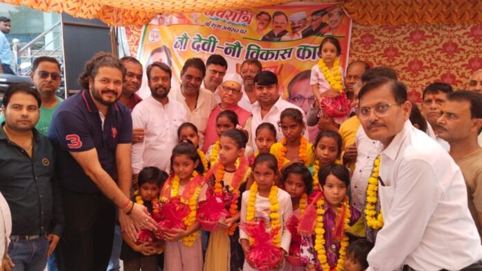 स्मार्ट हलचल|कानपुर के बर्रा वार्ड 77 पार्षद डा अखिलेश बाजपेई के द्वारा नवरात्रि के मौके पर नौ देवी नौ उद्घाटन का शुभारंभ बर्रा के सचान चौराहे पर किया गया। शुभारंभ पार्षद वेलफेयर के संरक्षक अमित पाण्डेय बंटी एवम पार्षद डा अखिलेश बाजपेई पार्षद नवीन पंडित मनीष मिश्रा नीरज गुप्ता के द्वारा मुख्य अतिथि स्वरूप नौ देवियों का पूजन पैर धोकर कर किया गया। इस मौके पर आयोजक पार्षद डा अखिलेश बाजपेई ने बताया की सचान चौराहे से संकट मोचन मंदिर तक 40 लाख रुपए की लागत से ग्रीन बेल्ट के कार्य का शुभारंभ नौ देवियों की मौजूदगी में किया गया। सभी देवी स्वरूप कन्याओं को वरिष्ठजनों के द्वारा उपहार दक्षिणा चुनरी सहित अन्य वस्तुएं भेट की गई। इस मौके पर मुख्य रूप से सुधीर मिश्रा गिरधारी लाल मिश्रा विनोद अवस्थी नारायण पांडे राजेंद्र यादव सतीश गुप्ता श्री ओम पाठक जीतू त्रिपाठी अजय त्रिपाठी सुनील त्रिवेदी रामू दीक्षित महावीर सेंगर दिलीप त्रिपाठी विपिन त्रिवेदी राजू अवस्थी बेदानंद त्रिपाठी अरुण सिंह आरके त्रिवेदी सहित काफी संख्या में पदाधिकारी मौजूद रहे।