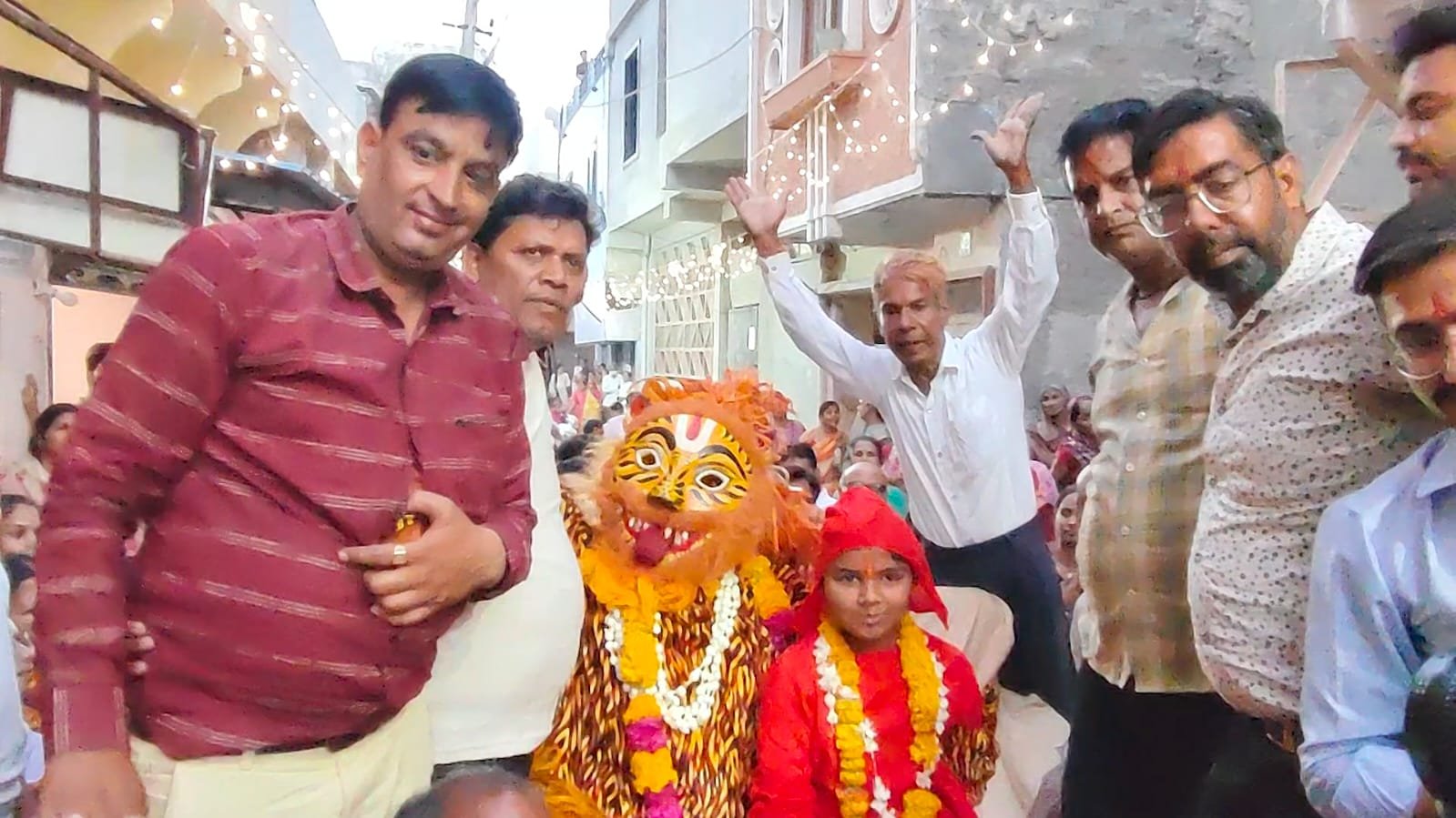 भीलवाड़ा । स्मार्ट हलचल|भीलवाड़ा के धानमण्डी क्षेत्र में स्थित प्राचीन नृसिंह मंदिर में इस वर्ष भी लगभग 200 वर्षों पुरानी परम्परा के अनुसार नृसिंह जयंती का भव्य आयोजन किया गया। कार्यक्रम में शहर और आसपास के क्षेत्रों से बड़ी संख्या में श्रद्धालु शामिल हुए। कार्यक्रम संयोजक मोनू तोषनीवाल ने बताया कि मंदिर परिसर को आकर्षक फूलों और रोशनी से सजाया गया था। प्रातःकाल विशेष पूजा-अर्चना और अभिषेक के साथ कार्यक्रम की शुरुआत हुई। इसके बाद भगवान नृसिंह भगवान की झांकी सजाई गई, जिसने भक्तों को विशेष रूप से आकर्षित किया। शाम के समय भजन-कीर्तन और धार्मिक प्रवचनों का आयोजन किया गया, जिसमें भक्तों ने बढ़-चढ़कर भाग लिया। पारंपरिक रीति-रिवाजों के अनुसार महाआरती की गई, जिसमें सैकड़ों श्रद्धालु उपस्थित रहे। दिलीप तोषनीवाल ने बताया कि यह परम्परा लगभग दो शताब्दियों से लगातार चली आ रही है और हर वर्ष इसे उसी श्रद्धा और उत्साह के साथ मनाया जाता है। स्थानीय लोगों के लिए यह केवल धार्मिक आयोजन ही नहीं, बल्कि सांस्कृतिक विरासत का भी महत्वपूर्ण हिस्सा है। नृसिंह किरदार नरेश पांडिया, भक्त प्रहलाद अंश तोषनीवाल, हिरण्यकश्यप का किरदार लाला सोनी ने निभाया। आयोजन में पुजारी भूपेंद्र शर्मा, वाद विवाद मंत्रोच्चार सत्यनारायण सुल्तानिया, गोवर्धन सुल्तानिया सहित अशोक, दिनेश, सोनू, राहुल तोषनीवाल का सहयोग रहा। अंत में प्रसादी का वितरण किया गया। पूरे आयोजन के दौरान सुरक्षा और व्यवस्था के विशेष इंतजाम किए गए थे, जिससे श्रद्धालुओं को किसी प्रकार की असुविधा न हो।