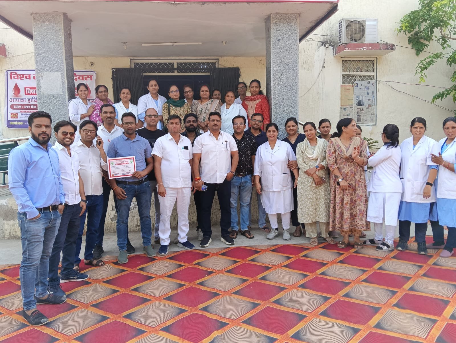 आज विश्व स्वास्थ्य दिवस के उपलक्ष में ब्लड बैंक में फार्मासिस्ट एसोसिएशन द्वारा विशाल रक्तदान शिविर का आयोजन किया गया जिसमें कई कर्मचारियों ने पूर्ण उत्साह के साथ रक्तदान किया इस अवसर पर राजस्थान नर्सेज यूनियन के कार्यकारी जिलाध्यक्ष ललित जीनगर,उपाध्यक्ष करण सिंह दिनेश खटीक, मेडिकल कॉलेज अध्यक्ष निरंजन चंपावत, , अंकित काबरा, कुलदीप आर्य सुनील व्यास,मनोज धाकड़, नर्सिग़ अधीक्षक राजकुमार शर्मा, मुकुट राज सिंह शक्तावत, नौशाद खान,अनीता चौधरी, दिनेश तिवाड़ी,विमला व्यास, अनीता खोईवाल,नीलू सीखवाल, मितवा भोला, निर्मला मीणा, विमला व्यास, प्रीति त्रिपाठी, सोहन बैरवा मुरलीधर जीनगर, सत्यनारायण दीपक सर्वा,पवन सिंगल, लाड कंवर, अनु कंवर राठौड़ के साथ सैकड़ों नर्सेज ने ज्ञापन दिया।