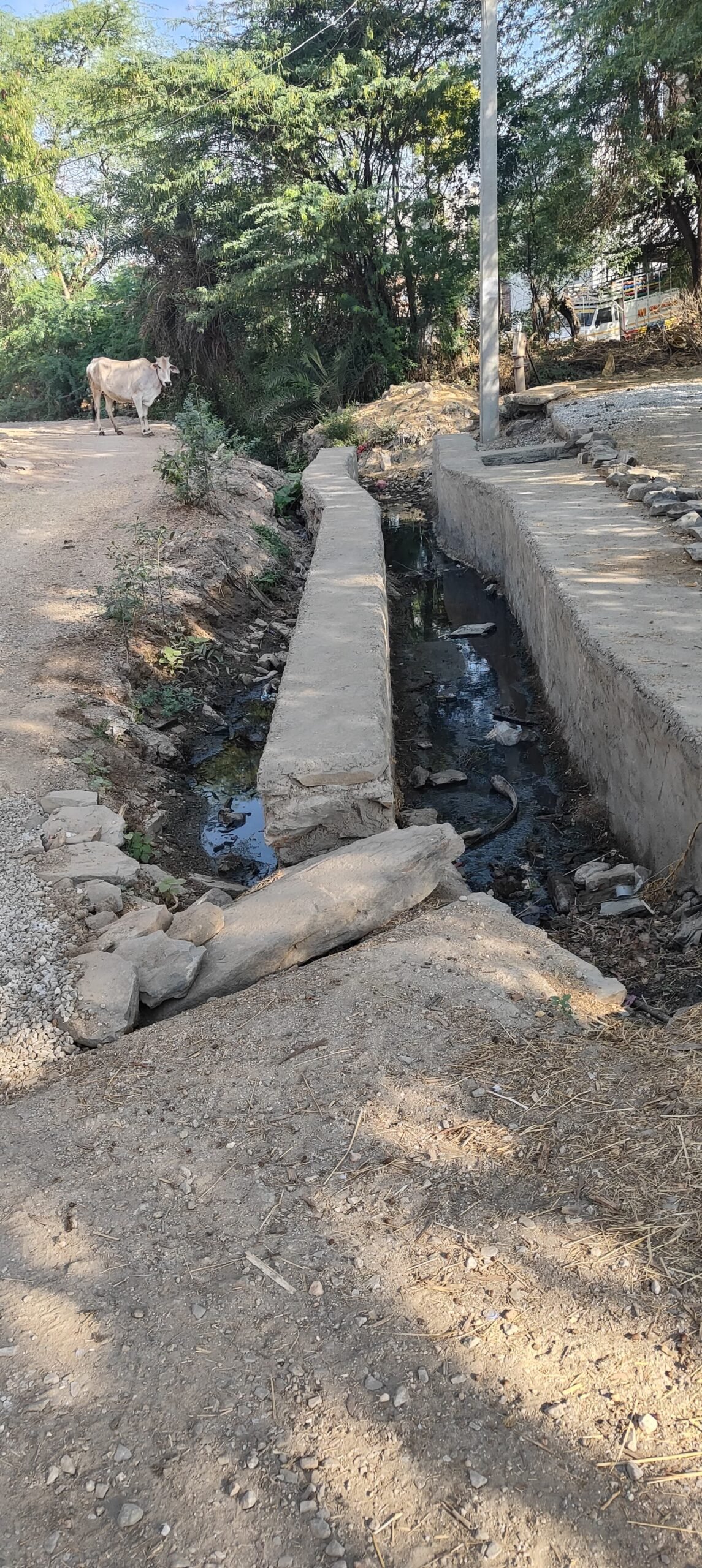 पोटलां: एक साल से अधूरा पड़ा नाला बना मुसीबत, खुली गंदगी और बदबू से ग्रामीण परेशान, दी आंदोलन की चेतावनी