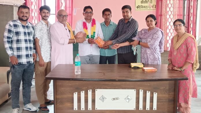 स्मार्ट हलचल|सांखू फोर्ट ग्राम विकास अधिकारी संघ उपशाखा की कार्यकारणी में सांखू ग्रामपंचायत के ग्रामविकास अधिकारी नारायण सिंह ढाका को ग्राम विकास अधिकारी संघ के अध्यक्ष निर्विरोध चुनने पर सांखू गांव में गुरुवार को ढाका का ग्रामीणों ने माल्यार्पण कर व उपहार भेट का कर सम्मान किया।इस अवसर पर ढाका ने इस दायित्व के लिए संगठन को निर्विरोध बनाने पर धन्यवाद ज्ञापित किया।इस मौके पर सरपंच सीता कंवर,प्रतिनिधि प्रेमसिंह उदावत, गोशाला सचिव भंवरलाल गोस्वामी,अशोक गोस्वामी,रामदयाल निमीवाल,अंकित दीक्षित,सुनील साईं,पटवारी सुशीला देवी,एलडीसी आशा मीणा,सुरेश सहायक,अनिल साईं सहित आदि ने मिठाई खिलाकर खुशी मनाई।