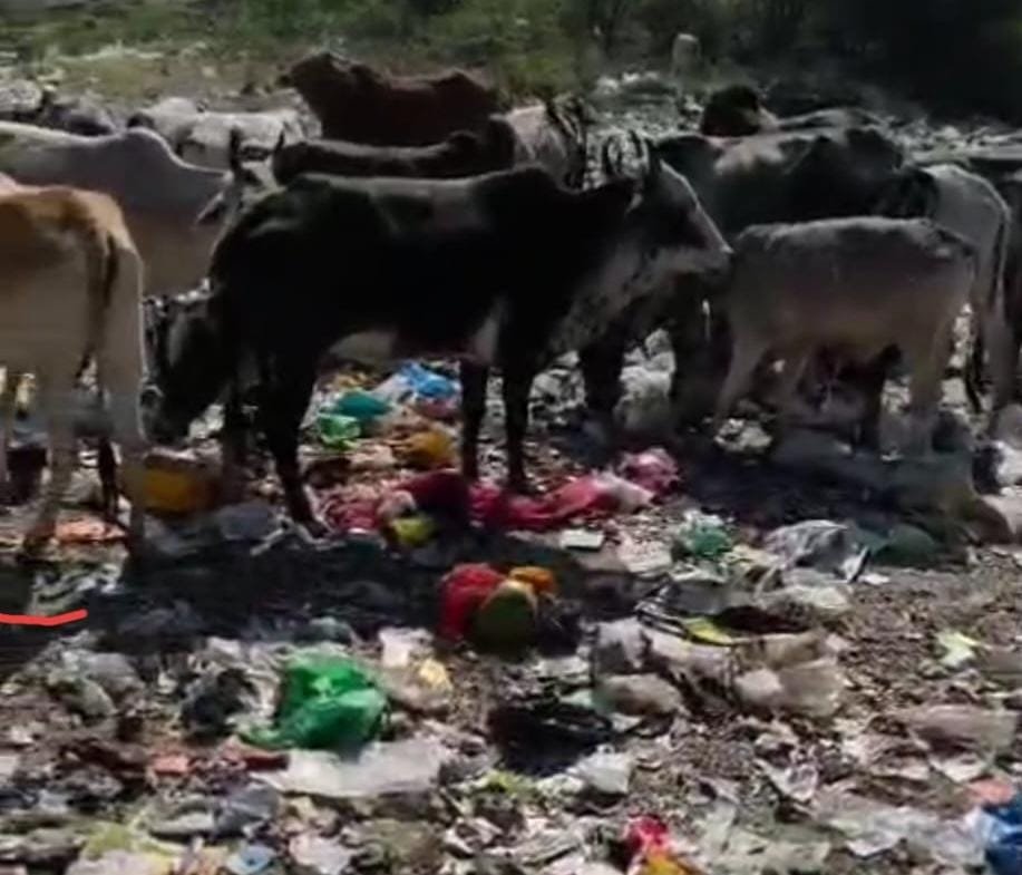 प्रशासन की लापरवाही सैकड़ो गोवंश खा रहे हैं प्लास्टिक, गो भक्तों ने कचरा स्टैंड पर चारदीवारी बनाने की मांग की