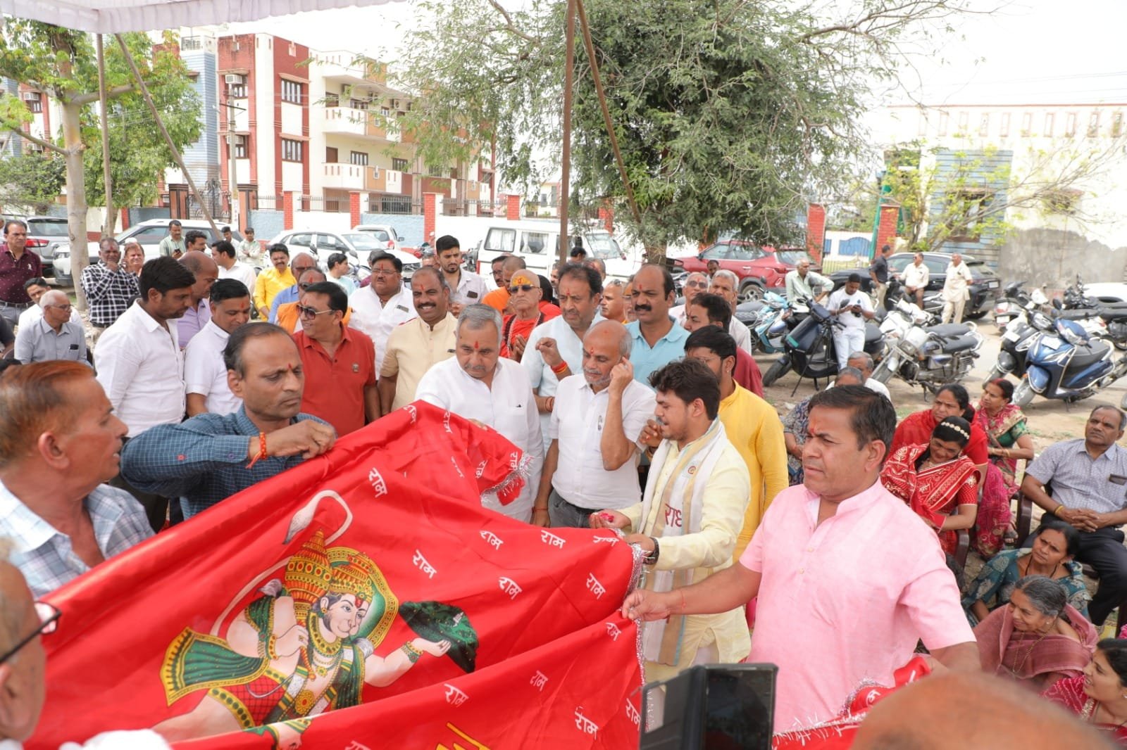 भीलवाड़ा| स्मार्ट हलचल|धर्मनगरी भीलवाड़ा में रविवार को श्रद्धा और भक्ति का अद्भुत संगम देखने को मिला, जब चारों ओर भगवान भोलेनाथ एवं संकटमोचन हनुमानजी के जयकारों से वातावरण गूंज उठा। अवसर था प्रख्यात कथावाचक पंडित प्रदीप मिश्रा के श्रीमुख से 8 से 14 अप्रैल तक आयोजित होने वाली श्री शिव महापुराण कथा के लिए धर्म ध्वजा स्थापना एवं भूमि पूजन का।