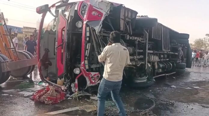 स्मार्ट हलचल-दिल्ली से श्याम जी के जा रही सवारियों से भरी एक निजी बस CHC पावटा के पास टायर फटने से अनियंत्रित होकर पलट गई-तेज धमाके के साथ दुर्घटना से मौके पर मचा हड़कंप दुर्घटना