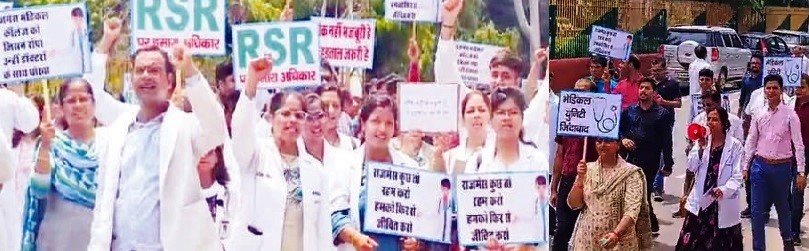 भीलवाडा। स्मार्ट हलचल/राजमेस मेडिकल कॉलेज की मेडिकल फैकल्टी ने आंदोलन के आठवें दिन सोमवार को महात्मा गांधी हॉस्पिटल से जिला कलेक्टर कार्यालय तक हाथों में तख्तियां लेकर रैली निकाली और आरएसआर की मांग की। कलक्ट्रेट के बाहर चिकित्सकों ने अपनी मांगों को लेकर प्रदर्शन किया और मुख्यमंत्री के नाम कलक्टर को ज्ञापन दिया। मेडिकल ज्यूरिष्ट डॉ. चेतन जैन ने बताया कि अस्पताल अधीक्षक डॉ. अरुण गौड़ की मौजूदगी में दिए ज्ञापन में बताया गया कि सरकार ने बजट में राजमेस में राज्य सेवा नियम स्वीकार करने की घोषणा की थी। अब इन नियमों को सभी चिकित्सक शिक्षकों पर लागू नहीं कर 1 अगस्त 2024 के बाद नियुक्त होने वाले शिक्षकों पर ही लागू कर रहे हैं। इसको लेकर राजमेस मेडिकल कॉलेज के डॉक्टर्स विरोध में हड़ताल पर है। भीलवाड़ा मेडिकल कॉलेज की ईएनटी प्रोफेसर डॉ. लीना जैन ने बताया सरकार के भेदभाव के कारण हम आहत हैं, इसलिए अपना ज्ञापन लेकर जिला कलेक्टर के पास आए हैं। उन्होंने बताया राजस्थान मेडिकल एजुकेशन सोसायटी (राजमेस) इसके 17 मेडिकल कॉलेज में प्रोफेसर, असिस्टेंट प्रोफेसर व एसोसिएट प्रोफेसर के केडर को राज्य सरकार ने डाई (मुर्दे) के समान घोषित कर दिया है। इसका पूरी मेडिकल फैकल्टी विरोध कर रहे हैं। भीलवाड़ा मेडिकल कॉलेज में 102 डॉक्टर टीचर है। इसमें नॉन क्लीनिकल और क्लीनिकल दोनों तरह के हैं। यदि हमारी मांगे नहीं मानी गई और हमें सामान सैलेरी स्ट्रक्चर के तहत राहत नहीं मिली तो आगे उग्र आंदोलन किया जाएगा। रैली के इस दौरान बड़ी संख्या में राजमेस से जुड़ा मेडिकल फैकल्टी स्टाफ मौजूद रहा।