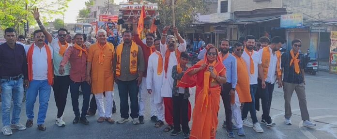 गंगापुर \स्मार्ट हलचल|हिंदू समाज के तत्वाधान में श्री रामनवमी के अवसर पर विश्व हिंदू परिषद ,बजरंग दल, दुर्गा वाहिनी के द्वारा विशाल शोभा यात्रा निकाली गई । शोभायात्रा बावन भेरुनाथ मंदिर से प्रारंभ हुई जिसमें राम दरबार की झांकी सहित अनेक समाजों की झांकियां थी ,उनमें भी आपरेशन सिंदूर वाली झांकी महिलाओं और बच्चों के लिए आकर्षण का केंद्र रही । शोभायात्रा बस स्टैंड,भूत बावजी,सहाड़ा चौपाटी,मुख्य बाजार होते हुए कुंड चौक,ज्ञानजी का चौक,शिवरती दरवाजा,रेगर मोहल्ला,पंच तीर्थ बालाजी होते हुए ईलाजी के चौक के यहां संपन्न हुई । जहां थाना मंगरी स्थित हटीले हनुमान मंदिर के ऊपर विशाल भगवा पताका लगाई गई 1 इस अवसर पर विश्व हिंदू परिषद के जिला अध्यक्ष जगदीश झंवर,विद्या प्रसाद जोशी,शोभा लाल जीनगर,घनश्याम सिंह राठौड़ ,राजकुमार सेन, कन्हैयालाल माली,विनोद पिछोलिया ,दिनेश बाफना,दिनेश लक्षकार,,शुभम शर्मा, विनोद पंचोली , पुष्पेंद्र सिंह चौहान,धर्मेंद्र गहलोत ,बंटी, लक्की अग्रवाल,पुष्पराज प्रजापत,,दया सैनी सहित अनेक कार्यकर्ता उपस्थित रहे।