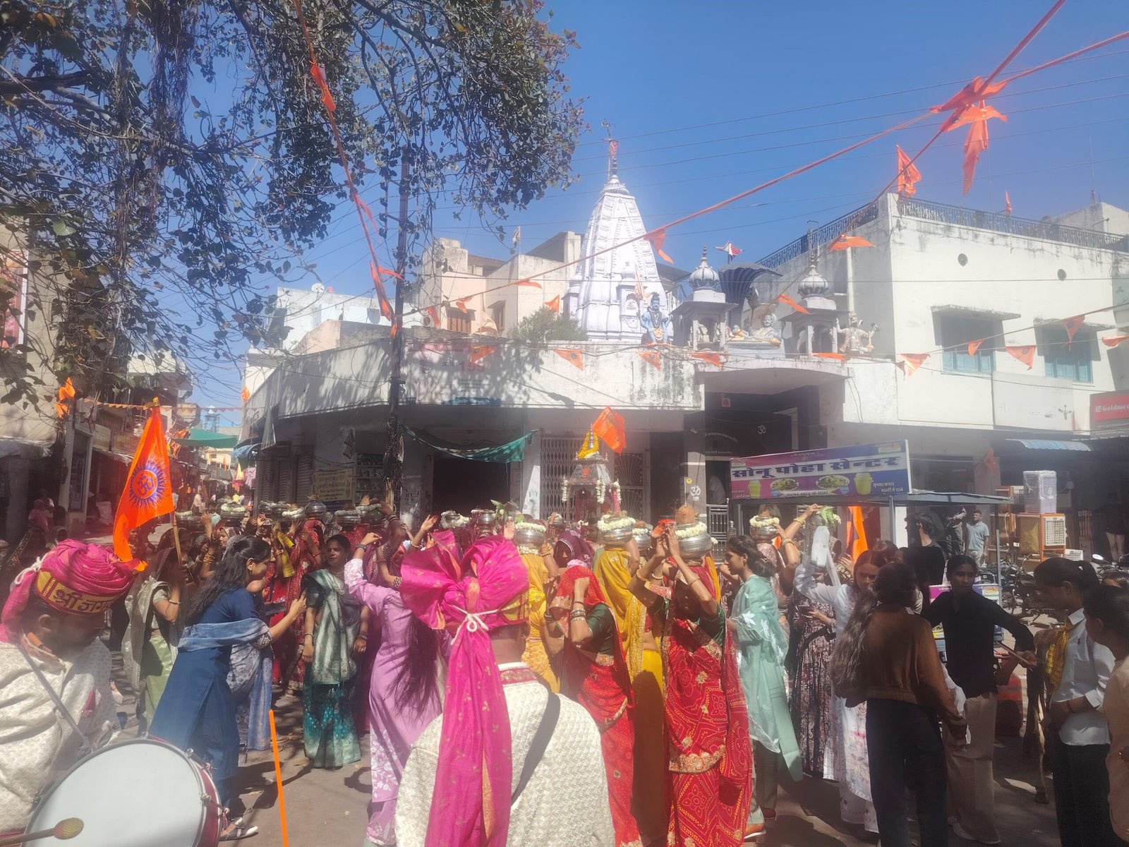 इससे पूर्व पिछले तीन चार दिन से मंदिर पर आकर्षक विधुत सजावट करने साथ ही मंदिर के बाहर चौक को भगवा ध्वज पताकाओ से सजाया गया। वहीं रात्री मे भजन किर्तन सहित अन्य धार्मिक कार्यक्रमों का आयोजन किया गया। कलश व शोभायात्रा के दौरान थाना प्रभारी बच्छराज चौधरी मय जाब्ते के मौजुद रहे।