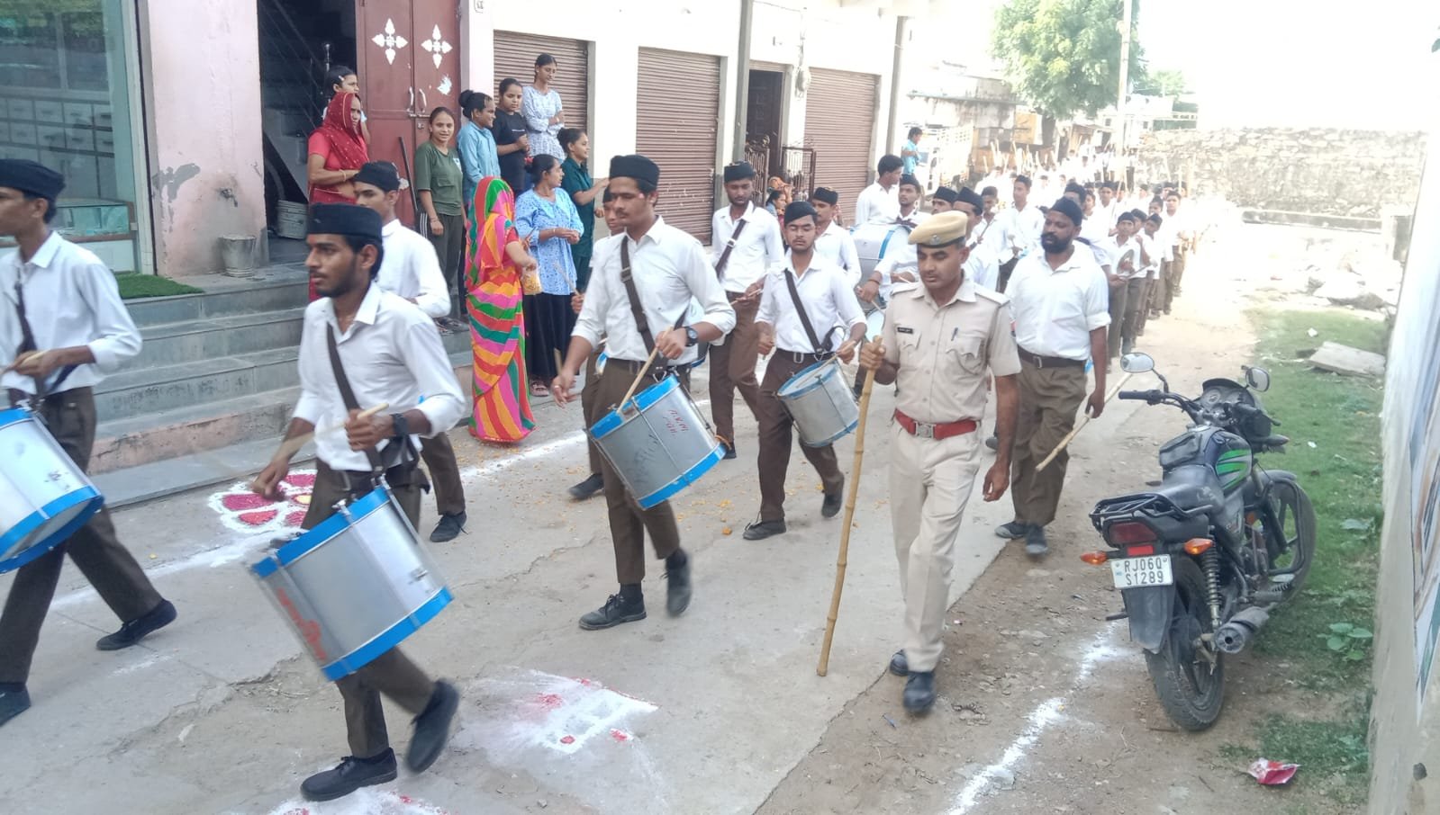 स्मार्ट हलचल|महुआ कस्बे में राष्ट्रीय स्वयंसेवक संघ के 100 वर्ष प्रारंभ होने पर महुआ शाखा का पथ संचलन रविवार को निकाला गया।स्थानीय राजकीय उच्च माध्यमिक विद्यालय से 3 बजे पथ संचलन प्रारंभ हुआ जो कस्बे के मुख्य मार्गो से होते हुए वापस विद्यालय प्रांगण में सम्पन्न हुआ।पथ संचलन का कस्बे में जगह जगह पुष्प वर्षा कर स्वागत किया गया। पथ संचलन में पुलिस प्रशासन मौजूद थे।
