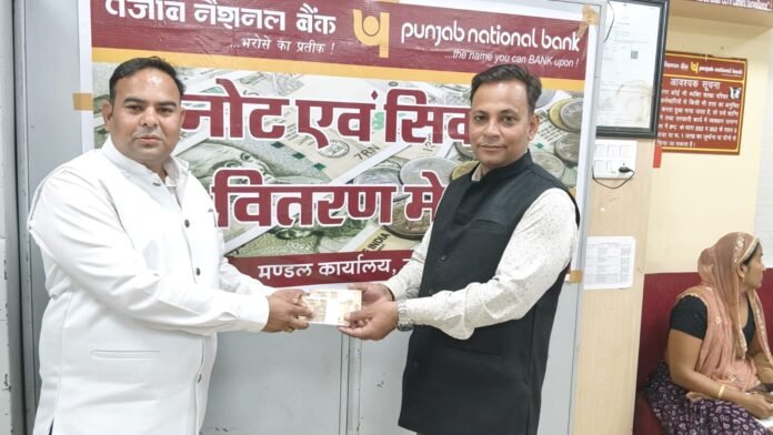 भीलवाड़ा // मांगलिक एवं सामाजिक आयोजनों में छोटे मूल्य वर्ग के नए नोटों की बढ़ती मांग को देखते हुए भारतीय रिजर्व बैंक (RBI) एवं पंजाब नेशनल बैंक (PNB) के संयुक्त तत्वावधान में बुधवार, 11 फरवरी 2026 को पीएनबी की नागौरी गार्डन शाखा में एक दिवसीय “फ्रेश नोट एक्सचेंज मेला” आयोजित किया गया। इस विशेष अभियान में शहरवासियों ने उत्साहपूर्वक भाग लिया और सुबह से ही बैंक परिसर में लंबी कतारें देखने को मिलीं।