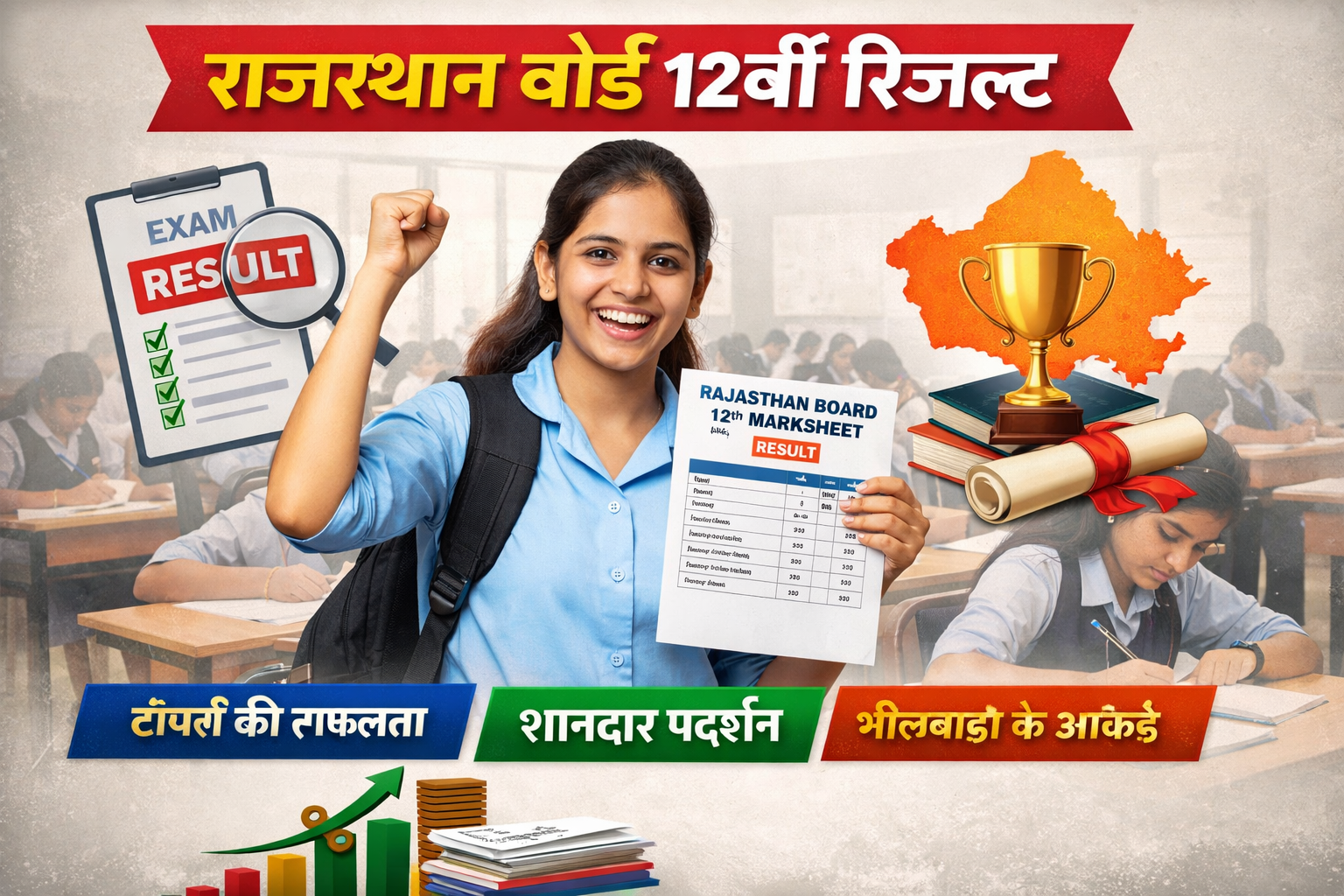 राजस्थान बोर्ड 12वीं के नतीजे घोषित: 96.23% रहा ओवरऑल रिजल्ट, भीलवाड़ा जिले का शानदार प्रदर्शन!