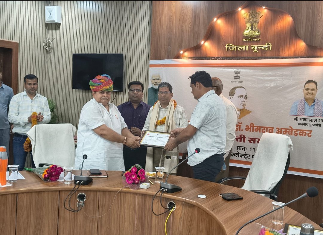 बूंदी- स्मार्ट हलचल|भारत रत्न डॉ. भीमराव अम्बेडकर की 135वीं जयंती के अवसर पर जिला कलेक्ट्रेट सभागार में जिला स्तरीय समारोह का आयोजन किया गया। कार्यक्रम में मुख्य अतिथि जिलाध्यक्ष रामेश्वर मीणा और कार्यवाहक जिला कलक्टर रामकिशोर मीणा ने शिरकत की।समारोह का विधिवत शुभारंभ अतिथियों द्वारा बाबा साहेब की तस्वीर के समक्ष दीप प्रज्ज्वलन और माल्यार्पण कर किया गया। इस अवसर पर सामाजिक न्याय एवं अधिकारिता विभाग की ओर से जयपुर में मुख्यमंत्री भजनलाल शर्मा की अध्यक्षता में आयोजित राज्य स्तरीय कार्यक्रम का लाइव प्रसारण देखा और सुना गया। इसके पश्चात जिलाध्यक्ष रामेश्वर मीणा ने उपस्थित सभी अधिकारियों, कर्मचारियों और गणमान्य नागरिकों को भारतीय संविधान की शपथ दिलाई। अपने विस्तृत उद्बोधन में उन्होंने बाबा साहेब की जीवनी, उनके संघर्षों और समाज के वंचित वर्गों के उत्थान में उनके अतुलनीय योगदान पर प्रकाश डाला। वहीं, जिला कलक्टर रामकिशोर मीणा ने संविधान की उद्देशिका (प्रस्तावना) का पाठन किया।