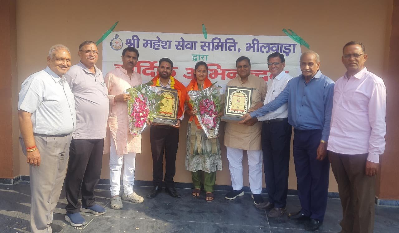 भीलवाडा।स्मार्ट हलचल|श्री नगर माहेश्वरी सभा के तत्वाधान मे हाल ही में राजस्थान प्रशासनिक सेवा (RAS) परीक्षा में सफलता हासिल करने वाले समाज के अमन लखोटिया और उनकी बहिन सृष्टि लखोटिया का महासभा के पुर्व सभापति रामपाल सोनी के सानिध्य में माहेश्वरी समाज के पदाधिकारीयो द्वारा मेवाड़ी पगड़ी एवं दुपट्टा पहनाकर भव्य स्वागत एवं अभिनंदन किया गया। समारोह में समाज के सदस्यों और वरिष्ठ पदाधिकारियों ने नव-चयनित अधिकारियों को सम्मानित किया, उनकी उपलब्धि की सराहना की और उज्ज्वल भविष्य के लिए शुभकामनाएं दीं। इस अवसर पर पुर्व सभापति सोनी ने कहा की आरएएस में चयनित इन युवाओं ने अपने परिश्रम, लगन और संकल्प से न केवल अपने परिवार बल्कि पूरे समाज का नाम रोशन किया है। इनकी सफलता हमारे क्षेत्र के युवाओं के लिए प्रेरणा स्रोत है। साथ ही इस तरह के सम्मान समारोह का उद्देश्य समाज के अन्य युवाओं को भी प्रशासनिक सेवाओं में आने के लिए प्रोत्साहित करना है। समारोह मे प्रदेश अध्यक्ष राधेश्याम चेचाणी, जिला अध्यक्ष अशोक बाहेती, जिला मंत्री रमेश राठी, नगर अध्यक्ष केदार गगरानी, नगर मंत्री संजय जागेटिया, राजेंद्र कचोलिया, देवेन्द्र सोमानी, अभिजीत सारडा, महावीर समदानी, प्रमोद डाड, विनय माहेश्वरी, राजेन्द्र तोषणीवाल सहित राजेन्द्र ममता माहेश्वरी एंव कई पदाधिकारी उपस्थित थे। इससे पुर्व श्री महेश सेवा समिति द्वारा नव-चयनित अधिकारियों का स्वागत किया गया। अध्यक्ष ओमप्रकाश नराणीवाल, सचिव राजेंद्र कुमार कचोलिया, उपाध्यक्ष सत्यनारायण मुन्द्रडा, निर्देशक दिलीप तोषणीवाल, ओमप्रकाश मालु, सुरेशचंद्र काबरा, केदार जागेटिया सहित लक्ष्मीनारायण वैष्णव, महावीर अर्चना लाखेटिया (पापा मम्मी) उपस्थित रहे।