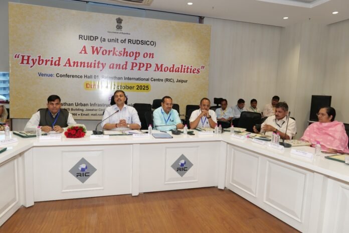 शाहपुरा-मूलचन्द पेसवानी । राजस्थान नगरीय आधारभूत विकास परियोजना (आरयूआईडीपी) के पंचम चरण में प्रस्तावित हाइब्रिड एन्यूटी (HAM) और पब्लिक प्राइवेट पार्टनरशिप (PPP) मॉडल पर जयपुर के राजस्थान इंटरनेशनल सेंटर (RIC) में आज एक दिवसीय कार्यशाला आयोजित की गई। इस कार्यशाला में एशियन डेवलपमेंट बैंक (ADB) के प्रतिनिधियों सहित 100 से अधिक निवेशक, संभावित बिडर्स, तकनीकी विशेषज्ञ, विभागीय अधिकारी और हितधारक शामिल हुए।