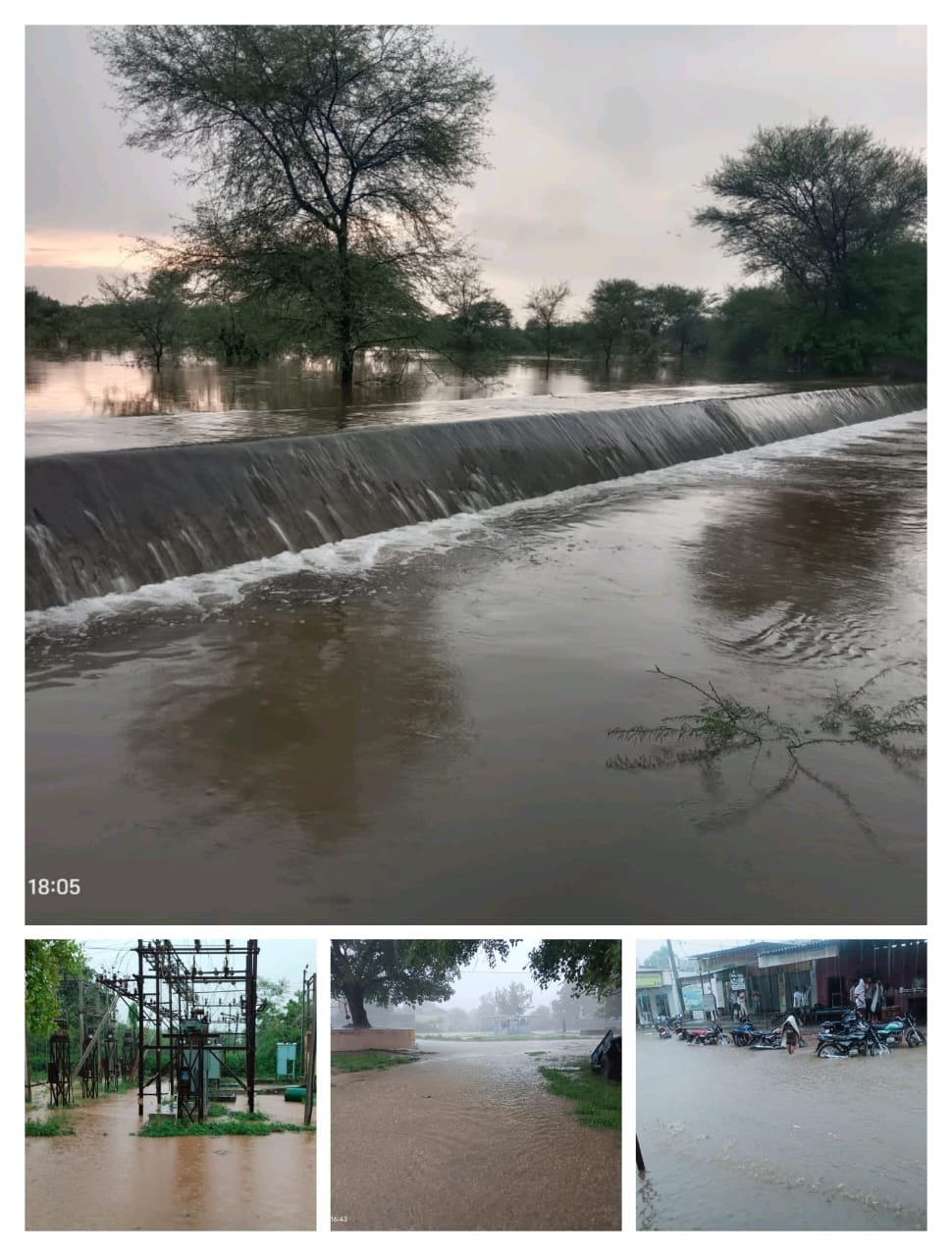 सवाईपुर ( सांवर वैष्णव ) :- सवाईपुर कस्बे सहित सोपुरा, सालरिया, ढ़ेलाणा, बड़ला, बनकाखेड़ा, चावंडिया, रेड़वास, किशनगढ़, गोठड़ा, गुवारड़ी आदि कहीं गांव में बुधवार दोपहर बाद मौसम का मिजाज बदला और करीब पौने घंटे तक तेज झमाझम बारिश का दौर चला, जिससे क्षेत्र के जलाशयों में पानी की आवक हुई, वही खेत भी पानी से लबालब भर गए, गांव की गलियां व सड़कें तलैया बन गए, जिसमें बच्चों ने खूब अटखेलिया की, सवाईपुर-सोपुरा मार्ग पर करीब 2 फीट तक पानी भर गया, वही क्षेत्र के अन्य जगहों पर भी जल भराव की समस्या देखी गई, वही झमाझम बारिश से मौसम ठंडा और खुशनुमा हो गया, क्षेत्र की कोठारी नदी सहित अन्य जलाशयों में पानी की आवक बनी हुई है, क्षेत्र के ढ़ेलाणा गांव में शिव सागर तालाब पर बना ऐनिकट पहली बार छलक गया, जिस पर करीब 4 इंच की चादर चलने से तालाब में पानी की आवक हुई, रेडवास का तालाब आधा भरने को आया, वही बड़लियास कस्बे में भी झमाझम बारिश हुई, जिससे विद्युत ग्रिड पानी से लबालब भर गया, शाम होने तक भी रिमझिम बारिश का दौर जारी रहा ।।