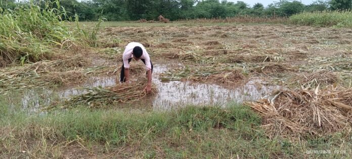 सावर(अजमेर)@स्मार्ट हलचल|देर रात हुई तेज बारिश ने सावर क्षेत्र के किसानों की उम्मीदों पर भयंकर प्रहार किया है। सावर, गोरधा, बिसुन्दनी, घटियाली और आसपास के गांवों में खेत पानी में डूब गए हैं, जिससे कट चुकी ज्वार, बाजरा और मूंग की फसलें पूरी तरह बर्बाद हो गई हैं।गोरधा निवासी किसान बंटूलाल मोटीस ने बताया, “तीन दिन पहले ट्रैक्टर मशीन से कटाई कर ली थी, बस घर लाने की तैयारी थी, लेकिन रविवार देर रात की भारी बारिश ने सब डुबा दिया। अब पशुओं के चारे का संकट भी गहरा गया है।”