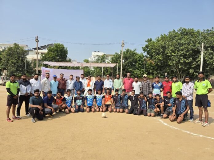 स्मार्ट हलचल|भीलवाड़ा में 48वीं जिला स्तरीय सीनियर हैंडबॉल प्रतियोगिता का आयोजन JSR हैंडबॉल अकादमी मोदी ग्राउंड पर हुआ। इस प्रतियोगिता का उद्घाटन मुख्य अतिथि प्रशांत मेवाड़ा जिला अध्यक्ष भाजपा, अध्यक्षता कैलाश सुथार अतिरिक्त जिला शिक्षा अधिकारी माध्यमिक शिक्षा भीलवाड़ा, राजेंद्र कुमार काबरा अध्यक्ष क्रीड़ा भारती महानगर भीलवाड़ा, इमरान कायमखानी अध्यक्ष अल्पसंख्यक मोर्चा भाजपा, मुकेश सोनी, अर्पित समदानी के आतिथ्य में हुआ।