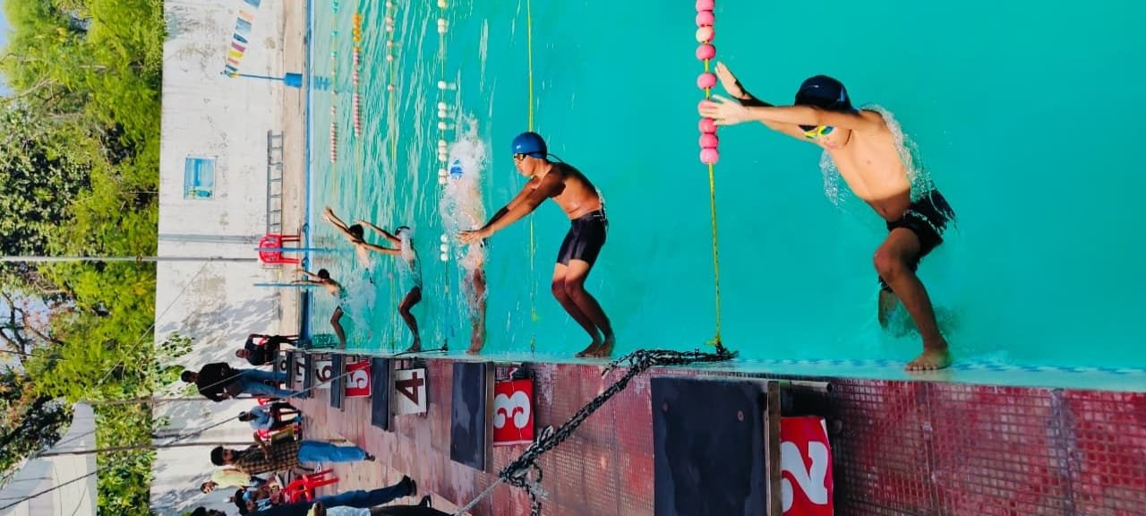 100 मीटर फ्री स्टाइल में अकील खान कायमखानी (शाहपुरा) प्रथम