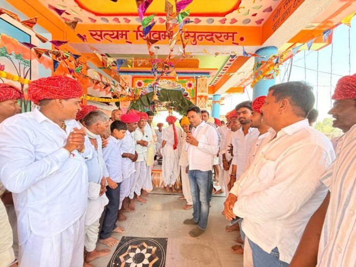 शंभूपुरा।स्मार्ट हलचल|चितौड़गढ़ विधायक चंद्रभान सिंह आक्या गुरूवार को ग्राम सियालीया के धाकड़ मौहल्ले में नव निर्मित मंदिर में आयोजित शिव परिवार मुर्ति प्राण प्रतिष्ठा कार्यक्रम में सम्मिलित हुए। इस दौरान उन्होने शिव प्रतिमा के समक्ष दण्डवत कर सर्वत्र खुशहाली की कामना की। विधायक आक्या ने उपस्थित ग्रामीणजनो को सम्बोधित करते हुए विकास कार्यो में किसी प्रकार की कमी नही आने देने की बात कही।