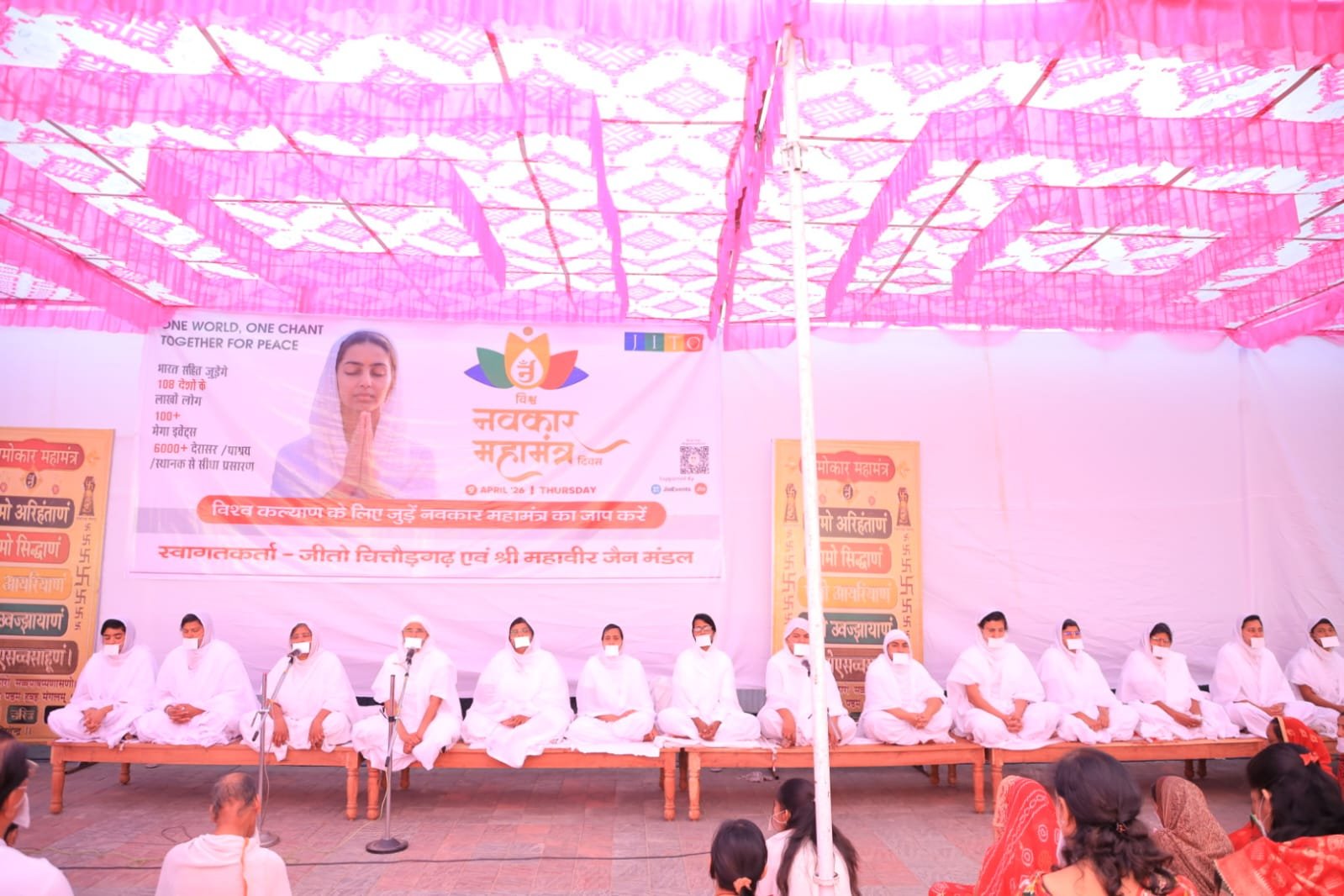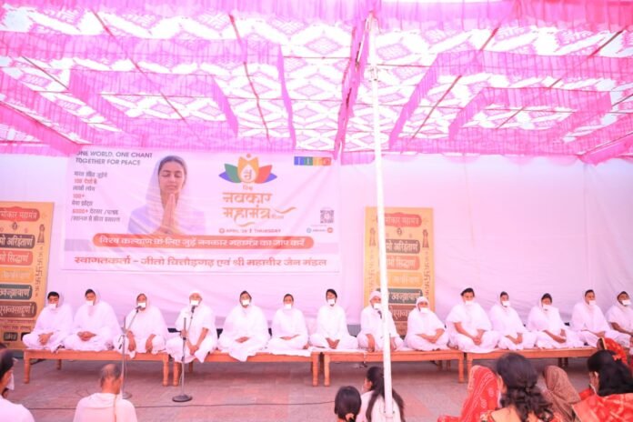 शंभूपुरा। स्मार्ट हलचल|विश्व नवकार महामंत्र दिवस का अति सफल आयोजन गुरुवार को श्री विद्यासागर मांगलिक धाम चित्तौड़गढ़ में सुबह 8.15 से किया गया। जिसका उद्देश्य विश्वभर में शांति और एकता को बढ़ावा देना है। इस कार्यक्रम का आयोजन जीतो चित्तौड़गढ़ चैप्टर और श्री महावीर जैन मंडल चित्तौड़गढ़ के सयुक्त तत्वावधान में किया गया जिसमें लगभग 2000 लोगों ने बड़ी श्रद्धा के साथ भाग लिया।