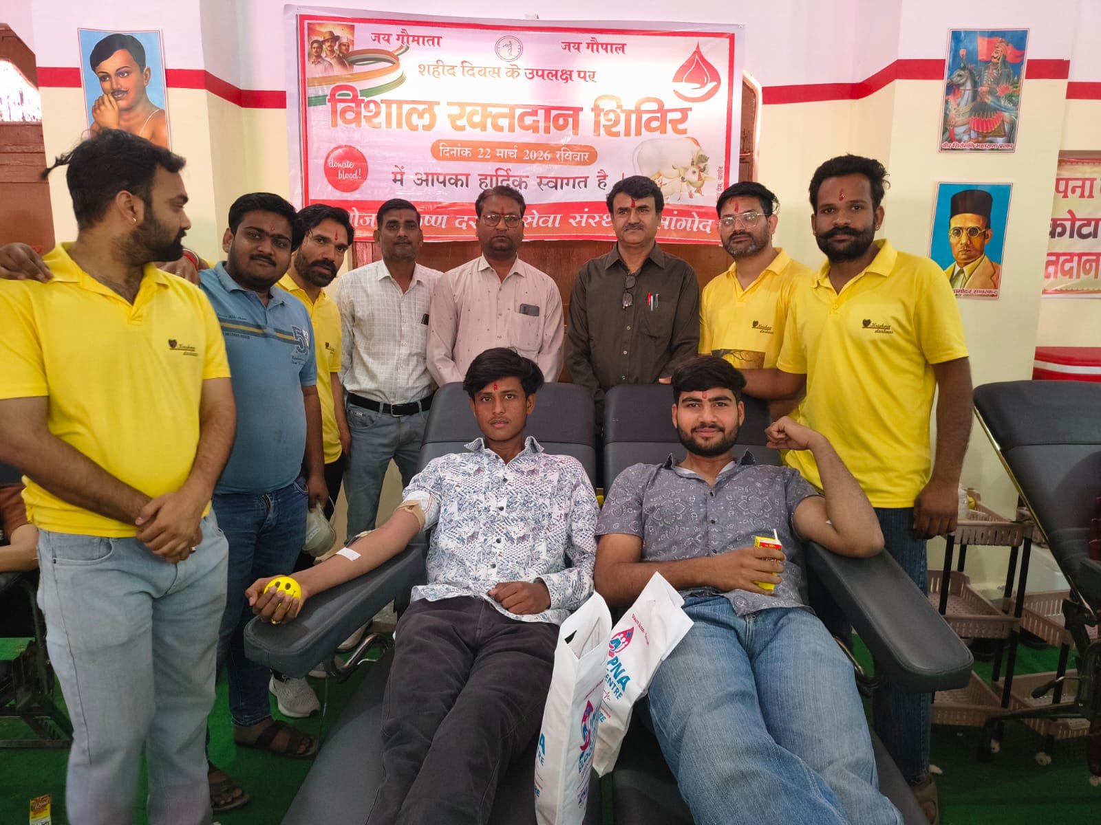 स्मार्ट हलचल|सांगोद 22 मार्च को कृष्ण दरबार सेवा संस्थान सांगोद द्वारा रविवार को काशीपुरी हिंदू जनता ट्रस्ट (मठ) में अमर शहीदों की स्मृति में विशाल रक्तदान शिविर का आयोजन किया गया। शिविर में क्षेत्र के युवाओं एवं समाजसेवियों ने उत्साहपूर्वक भाग लेते हुए करीब 425 यूनिट रक्तदान किया।संस्थान के सदस्यों ने बताया कि 23 मार्च को मनाए जाने वाले शहीद दिवस (बलिदान दिवस) के अवसर पर अमर शहीदों को श्रद्धांजलि अर्पित करने के उद्देश्य से यह रक्तदान शिविर एक दिन पूर्व रविवार को आयोजित किया गया। शिविर की सफलता के लिए संस्थान द्वारा पिछले लगभग 15 दिनों से सांगोद क्षेत्र में जनसंपर्क एवं जागरूकता अभियान चलाया जा रहा था, जिसका सकारात्मक परिणाम देखने को मिला।