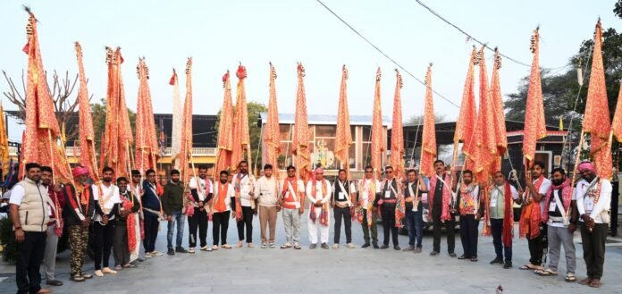 भीलवाड़ा ।स्मार्ट हलचल|श्री श्याम युवा मित्र मण्डल समिति (रजि.) भीलवाड़ा द्वारा आयोजित भीलवाड़ा से खाटूधाम अष्टम श्री श्याम निशान पदयात्रा दिनांक 10 फरवरी को भीलवाड़ा से रवाना हुई थी मंडल के सदस्यों द्वारा सेवा भावना से 11 दिवस पूर्ण भक्तिमय वातावरण में आज खाटूधाम पर बाबा श्री श्याम एवं निशानों की पूजा अर्चना कर यात्रा का समापन किया गया एवं क्षेत्र की उन्नति की कामना की। मण्डल के अध्यक्ष विवेक बेरीवाला ने बताया की 285 किलोमीटर की 11 दिवसीय निशान पदयात्रा भीलवाड़ा से रवाना होकर लांबिया, गुलाबपुरा, बांदनवाडा, नसीराबाद, सीलोरा, सांभर, रेनवाल एवं पचार होते हुए दिनांक 20 फरवरी को खाटूधाम पहुंची जिसका प्राय सभी शहरों के मुख्य मार्गों पर श्याम भक्तों द्वारा पुष्प वर्षा एवं पदयात्रियों को माला पहनाकर स्वागत किया गया। यात्रा मे विवेक बेरीवाला के साथ कुशल अग्रवाल, आयुष गर्ग, देवेन्द्र राणावत, पूरण सिंह, कुलदीप सिंह, संजय अग्रवाल, विशेष शर्मा, मनीष हिरानी, पवन गोयल, नितिन गोयल, वर्दीचन्द शर्मा, मयंक अग्रवाल, देवेश पाटीदार, जयदीप मिश्रा, रितेश गर्ग, अंगद परसरामपूरिया, संजय चौधरी, सज्जन अग्रवाल, सत्य प्रकाश लोहिया, सिद्धार्थ बूबना, नरेश गनेड़ीलाल, रघुबीर सिंह, गोपाल माली, तेजु लाल माली एवं अन्य श्याम भक्त बाबा श्री श्याम के निशान लेकर रवाना हुए थे। यात्रा के दौरान ग्राम भोजियावास (किशनगढ़) मे दिनांक 15 फरवरी को पारस बेरीवाला एवं अक्षत अग्रवाल द्वारा संगीतमय सुन्दरकांड पाठ किया गया एवं साथ ही ग्राम पचार (खाटू) मे दिनांक 19 फरवरी को बाबा श्री श्याम को भजनों की भजन संध्या का आयोजन किया गया एवं बाबा श्याम की कृपा से यात्रा सम्पूर्ण होने के उपलक्ष्य में 22 फरवरी को बरसाना गार्डन, चित्तौड़ रोड पर शाम 4 बजे से भजन संध्या का आयोजन है जिसमें भजन गायक अजय शर्मा दौसा, अभी अनुज पारीक भीलवाड़ा एवं सुगना जांगिड़ बिजयनगर अपनी सुमधुर वाणी से बाबा श्याम को रिझायेगें।