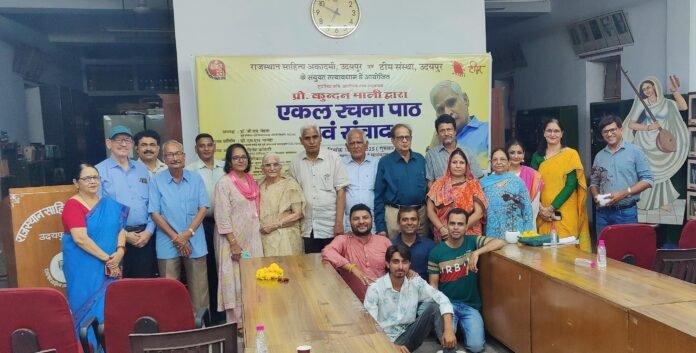 उदयपुर, स्मार्ट हलचल|राजस्थान साहित्य अकादमी एवं टीम संस्था के संयुक्त तत्वावधान में सांस्कृतिक सृजन पखवाड़ा के तहत सुप्रसिद्ध कवि, आलोचक तथा अनुवादक कुंदन माली का एकल रचना पाठ एवं संवाद आयोजित किया गया। अध्यक्षता प्रो. जी. एम. मेहता ने की, मुख्य अतिथि डॉ. एम. एल. नागदा और विशिष्ठ अतिथि पूर्व आरएएस अधिकारी दिनेश कोठारी थे।