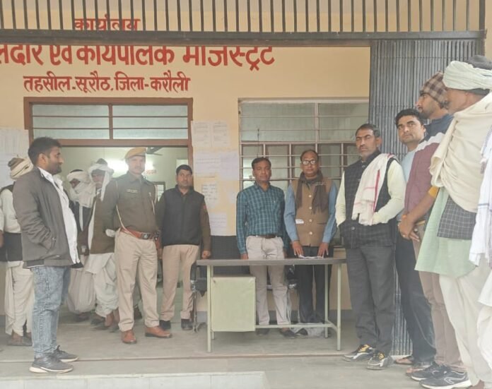 सूरौठ। स्मार्ट हलचल|गांव रीझवास में 70 बीघा चारागाह भूमि में खड़ी सरसों एवं गेहूं की फसल की नीलामी तहसील प्रशासन तीसरी बार भी नहीं कर पाया। बुधवार को तहसील परिसर में राजस्व विभाग की टीम ने तीसरी बार नीलामी की प्रक्रिया शुरू की लेकिन किसी भी ग्रामीण ने पहले की तरह इस बार भी बोली नहीं लगाई जिसके कारण फसल की नीलामी नहीं हो सकी। हालांकि नीलामी प्रक्रिया के दौरान सैकड़ो ग्रामीण तहसील परिसर में मौजूद रहे। गौरतलब है कि इससे पहले तहसील प्रशासन दो बार और नीलामी की प्रक्रिया कर चुका था लेकिन बोली नहीं लगाए जाने के कारण नीलामी नहीं हो सकी थी।तहसीलदार संजीव धाकड़ एवं गिरदावर रामकेश भागौड ने बताया कि सूरौठ तहसील के गांव रीझवास में खसरा नंबर 1260 की करीब 70 बीघा चारागाह भूमि पर 25 ग्रामीणों ने अतिक्रमण कर सरसों एवं गैंहू की फसल बो रखी है। इस मामले में तहसील प्रशासन ने पिछले दिनों अतिक्रमण करने वाले लोगों के खिलाफ 91 की कार्रवाई करते हुए फसल की नीलामी के आदेश जारी किए थे। तहसील प्रशासन ने पहले 3 फरवरी को रीझवास की 70 बीघा चारागाह भूमि में खड़ी फसल की तहसील कार्यालय में नीलामी करने के आदेश जारी किए थे। 3 फरवरी को किसी भी ग्रामीण की ओर से बोली नहीं लगाए जाने के कारण तहसील प्रशासन ने फसल की नीलामी के लिए 13 फरवरी की तिथि तय की थी। 13 फरवरी को भी किसी ग्रामीण ने बोली नहीं लगाई । इसके पश्चात तहसील प्रशासन ने चारागाह भूमि में खड़ी फसल की नीलामी के लिए 18 फरवरी की तिथि निश्चित की थी। बुधवार को तहसील प्रशासन ने सुबह 11 बजे फसल की नीलामी की प्रक्रिया शुरू की। नीलामी की प्रक्रिया के दौरान तहसीलदार संजीव धाकड़, गिरदावर रामकेश भागौड, पटवारी श्याम सिंह सोलंकी सहित करीब करीब सैंकड़ों ग्रामीण मौजूद रहे। शाम 5 बजे तक किसी भी ग्रामीण ने बोली नहीं लगाई जिसके कारण बुधवार को भी फसल की नीलामी नहीं हो सकी।