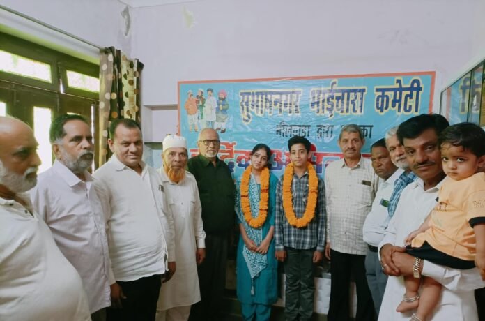 भीलवाड़ा 1 अप्रैल / सुभाष नगर ( मलाण ) निवासी उस्मान खां कायमखानी की पुत्री शबाना बानो एवं पुत्र इरफान खान की शानदार शैक्षिक उपलब्धि पर आज सोमवार को भाई चारा कमेटी की ओर से हौसला अफजाई कर फूल मालाओं से दोनों का अभिनंदन किया गया । जानकारी के अनुसार महेश शिक्षा सदन की छात्रा शबाना बानो ने 12वीं बोर्ड की परीक्षा में 89.60 प्रतिशत अंक प्राप्त किए और पुत्र इरफान खान ने दसवीं बोर्ड परीक्षा में 85 .50 प्रतिशत अंक प्राप्त कर विशेष उपलब्धि अर्जित की है। एक ही परिवार के दो सदस्यों द्वारा शिक्षा में अव्वल रहने पर उन्होंने कहा कि इस कामयाबी में माता-पिता व परिवार के अन्य सदस्यों सहित नाना यासीन खां कायमखानी का विशेष योगदान रहा और अध्यापकों के कुशल मार्गदर्शन से यह उपलब्धि हासिल हुई है दोनों विद्यार्थियों का राजकीय सेवा में जाकर देश हित के लिए काम करने का सपना है ।