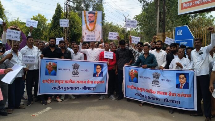 भीलवाड़ा // दिल्ली के उत्तम नगर क्षेत्र में होली के दिन हुई 26 वर्षीय तरुण खटीक की हत्या के मामले को लेकर खटीक समाज में आक्रोश बढ़ता जा रहा है। इसी क्रम में “राष्ट्रीय समृद्ध खटीक समाज सेवा संस्थान, राजस्थान” के बैनर तले समाज के प्रतिनिधियों ने सोमवार को कलेक्ट्रेट कार्यालय पर प्रदर्शन कर राष्ट्रपति के नाम जिला कलेक्टर भीलवाड़ा को ज्ञापन सौंपकर निष्पक्ष जांच और दोषियों के खिलाफ कठोर कार्रवाई की मांग की।