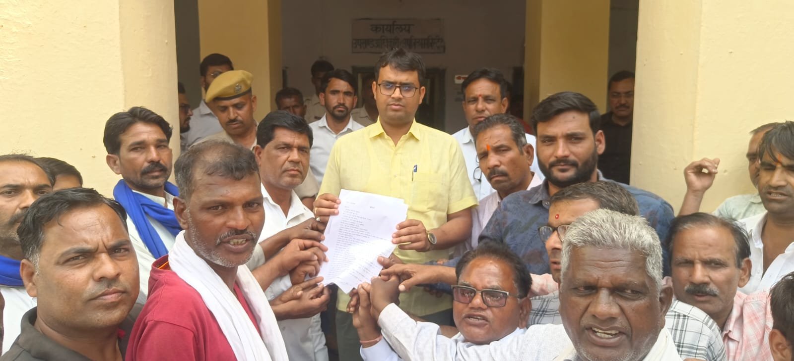 लाडपुरा स्मार्ट हलचल|उत्तम नगर दिल्ली निवासी तरुण खटीक हत्याकांड में त्वरित न्याय, आर्थिक प्रतिकर ₹2 करोड व अन्य मांगों को लेकर समृद्ध खटीक समाज सेवा संस्थान मांडलगढ़ के नेतृत्व के साथ सकल हिन्दू समाज ने माननीय राष्ट्रपति, भारत गणराज्य, गृहमंत्री भारत सरकार एवं उप राज्यपाल, दिल्ली सरकार को उप जिलाधिकारी मांडलगढ़ को ज्ञापन सौंपा। मंगलवार को समृद्ध खटीक समाज सेवा संस्थान मांडलगढ़ के अध्यक्ष शान्ति लाल खटीक ने बताया कि यह ज्ञापन तरुण खटीक की नृशंस हत्या के विरोध में और परिवार की सुरक्षा व सहायता दिलाने के उद्देश्य से दिया गया। ज्ञापन सौंपने के दौरान हिन्दू संगठनों व खटीक समाज मांडलगढ़ बिगोद क्षेत्र से लादू लाल खटीक, रतन लाल खटीक, विनोद ओस्तवाल, अशोक जीनगर, मोहन लाल पहाड़ियां, अर्जुन ब्रह्मभट्ट, नारायण लाल सनाढ्य, कुस्तुर खटीक, ओम ब्रह्मभट्ट, पारस कुमार, पप्पू लाल, नन्द लाल सेन, कनीराम, अनिता सुराणा, अजीत जोशी, महावीर खटीक, सहित सैकड़ों समाज के गणमान्य उपस्थित रहे।
