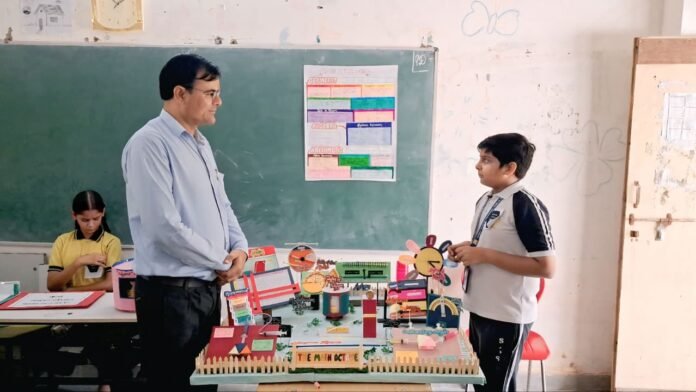 स्मार्ट हलचल|राजस्थान राज्य शैक्षिक अनुसंधान एवं प्रशिक्षण परिषद उदयपुर के आदेशानुसार विज्ञान मेले का आयोजन 7 अक्टूबर से 9अक्टूबर तक स्वामी विवेकानंद राजकीय मॉडल स्कूल ब्लॉक-करौली में किया गया।प्रधानाचार्य गोविंद सहाय प्रजापत ने बताया कि”विकसित एवं आत्मनिर्भर भारत के लिए विज्ञान, प्रौद्योगिकी,अभियांत्रिकी एवं गणित”थीम पर इस तीन दिवसीय विज्ञान मेले का आयोजन किया गया है। विज्ञान मेले का उद्देश्य युवा पीढ़ी में विज्ञान,प्रौद्योगिकी,अभियांत्रिकी एवं गणित के लिए रुचि जागृत कर उनमें वैज्ञानिक अभिवृत्ति को विकसित करना और विद्यार्थियों की अपनी स्वाभाविक जिज्ञासा एवं रचनात्मक के लिए एक मंच उपलब्ध कराना,जहां वे अपनी ज्ञान पिपासा संतुष्टि हेतु खोजबीन कर अपने प्रतिभा का प्रदर्शन कर सके,इस उद्देश्य के साथ विज्ञान मेले का आयोजन किया गया है।विज्ञान मेले में राजकीय एवं निजी विद्यालयों के विद्यार्थियों ने भाग लिया।प्रथम दिवस में क्विज एवं सेमिनार का आयोजन किया गया और द्वितीय दिवस में जूनियर एवं सीनियर वर्ग मॉडलों की प्रदर्शनी रखी गई।आज समापन के अवसर पर कार्यक्रम कि अध्यक्षता कर रहे जिला शिक्षा अधिकारी माध्यमिक इंद्रेश तिवाड़ी ने विजेता विद्यार्थियों को प्रमाण पत्र और चेक प्रदान कर पुरूस्कृत किया।
