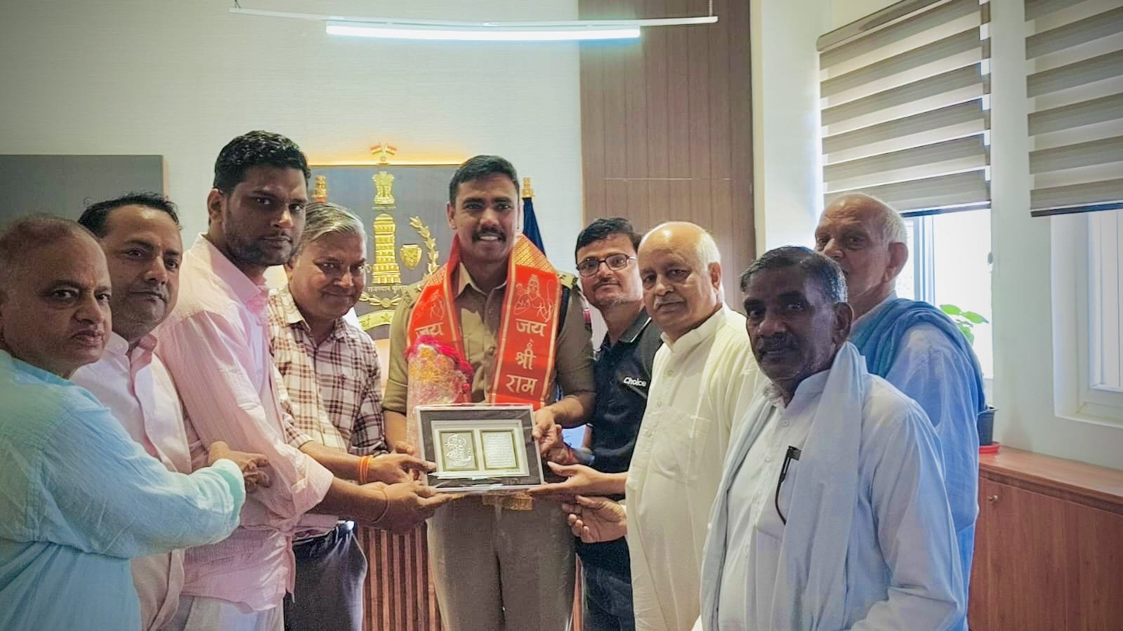 जुरहरा, जिला डीग: स्मार्ट हलचल|जुरहरा क़स्बे में करीब 40 महीने पहले ज्वेलरी शोरूम में हुई चोरी की घटना का खुलासा करने पर शुक्रवार को जुरहरा व्यापार मण्डल के पदाधिकारियों ने एसपी कार्यालय डीग पहुंचकर एसपी श्रीशरण गोपीनाथ कांबले का स्वागत व सम्मान करते हुए चोरी की घटना का खुलासा करने पर उनका आभार व्यक्त किया। गौरतलब है कि जुरहरा कस्बे में हुई उक्त चोरी की घटना का गुरुवार को जिला पुलिस अधीक्षक श्रीशरण गोपीनाथ कांबले द्वारा घटना के 40 माह बाद खुलासा किया गया है जबकि क्षेत्र के लोगों ने उक्त चोरी की वारदात के ख़ुलासा होने की उम्मीद छोड़ दी थी लेकिन एसपी श्रीशरण गोपीनाथ कांबले के निर्देशन में जुरहरा थाने पर पदस्थ आरपीएस अधिकारी नरेश कुमार चनेजा व उनकी टीम ने चोरी का पर्दाफाश करते हुए तीन आरोपियों को गिरफ्तार कर सात किलोग्राम चांदी को भी बरामद किया है। जुरहरा व्यापार संघ ने जहां गुरुवार को आरपीएस अधिकारी नरेश कुमार चनेजा व उनकी टीम का सम्मान किया वहीं शुक्रवार को एसपी डीग का सम्मान किया गया है। इस मौके पर मुख्य रूप से सर्राफा व्यापार संघ अध्यक्ष महेंद्र कुमार जैन के साथ व्यापार मंडल के राजीव अग्रवाल, सोनू भगत जी, सुभाष गौड, गजेंद्र जाट, राकेश जैन, किराना संघ अध्यक्ष व भामाशाह पूरन सैनी व अजय शर्मा मौजूद रहे।