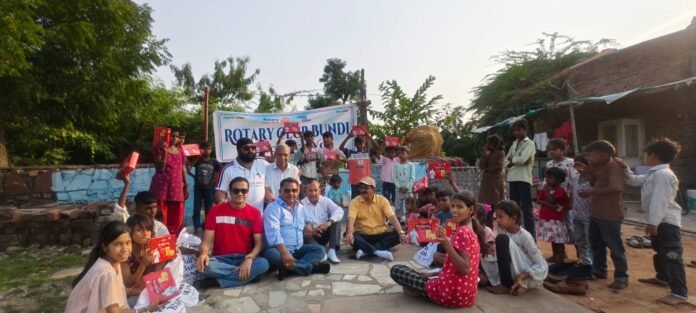 बूंदी – दीपावली के अवसर पर रोटरी क्लब द्वारा चलाई जा रही मुहिम के अंतर्गत बुधवार को शहर की कच्ची बस्ती उंदालिया की डूंगरी में गरीब और असहाय लोगों के साथ खुशियां बांटते हुए बच्चों को प्रोजेक्ट डायरेक्टर हासम भाई की ओर से मिठाई और आतिशबाजी के किट वितरित किए गए । इस दौरान कल उपाध्यक्ष ऋतुराज दाधीच, सचिव जगदीश मंत्री, जितेंद्र छाबड़ा ,शैलेश चौबीसा ध्रुव व्यास मौजूद रहे ।