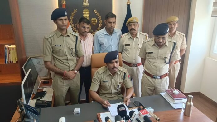 फोटो-01 जिला पुलिस अधीक्षक कार्यालय में घटना का खुलासा करते जिला पुलिस अधीक्षक व अन्य अधिकारी।
