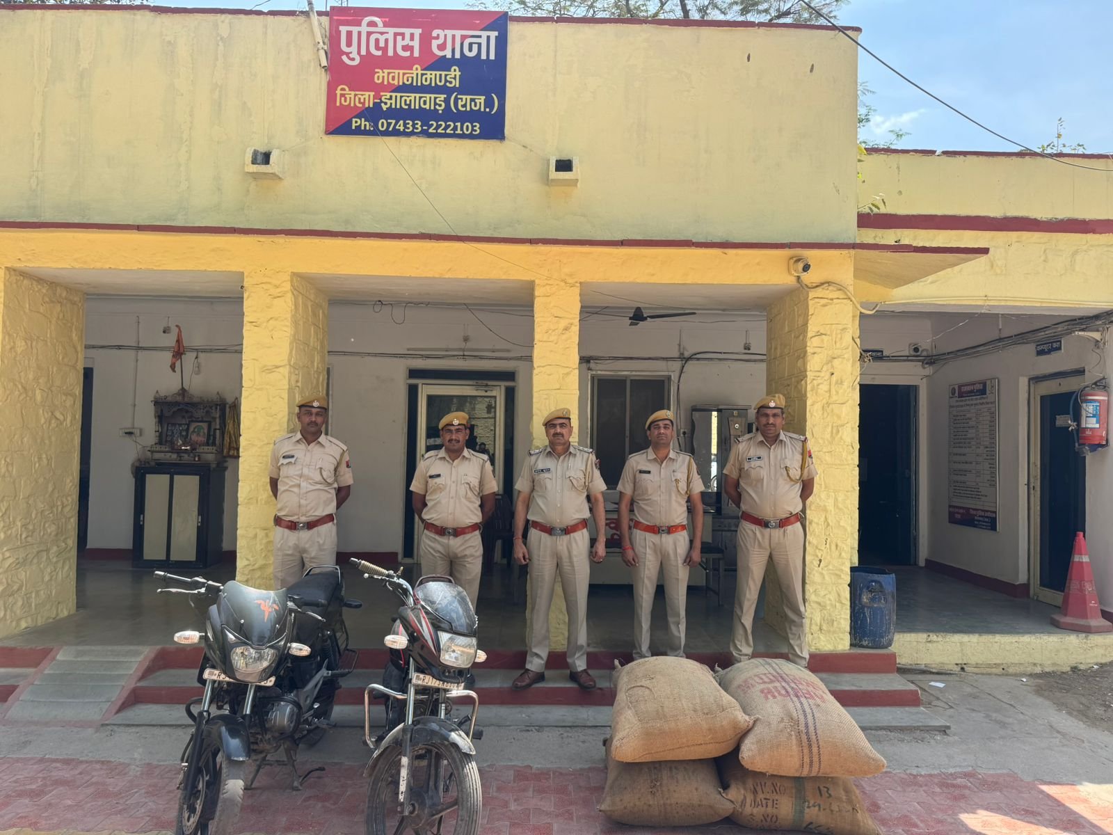 स्मार्ट हलचल/ भवानीमंडी (झालावाड़)। भवानीमंडी पुलिस ने बड़ी सफलता हासिल करते हुए कृषि उपज मंडी के बाहर से हुई सरसों और धनिया की बोरियों की चोरी का पर्दाफाश किया है। पुलिस ने मामले में त्वरित कार्रवाई करते हुए महज 48 घंटों के भीतर 4 शातिर चोरों को धर दबोचा है।