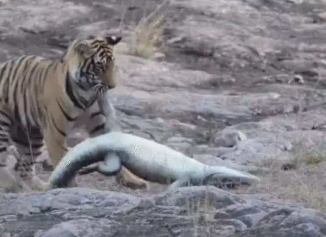 जानकारी के अनुसार- घटनाक्रम रणथंभौर टाइगर रिजर्व में आज सुबह की सफारी के दौरान जोन नंबर 4 के जामुन देह क्षेत्र में हुआ। पर्यटकों को करीब 9 बजे तालाब के किनारे बाघिन पहले से घात लगाकर बैठी दिखाई दी। इस दौरान जैसे ही एक मगरमच्छ तालाब के किनारे आया तो वह उस पर टूट पड़ी। दोनों में करीब 10 मिनट तक संघर्ष चला। मगरमच्छ को पानी का सबसे खतरनाक शिकारी माना जाता है, लेकिन यहां बाघिन से संघर्ष में वह मारा गया। इसके बाद बाघिन उसके जबड़े में दबोचकर चट्टानों से जंगल की ओर ले गई। पूरा घटनाक्रम तेजी से हुआ और पर्यटक भी बाघिन की फुर्ती देखकर हैरान रह गए। पूरे सीन को वहां मौजूद पर्यटकों ने अपने कैमरे में कैद किया। नजारा बेहद रोमांचकारी होने के साथ- साथ दुर्लभ भी था, क्योंकि आमतौर पर बाघ भारी भरकम मगरमच्छ का शिकार कम करते है।